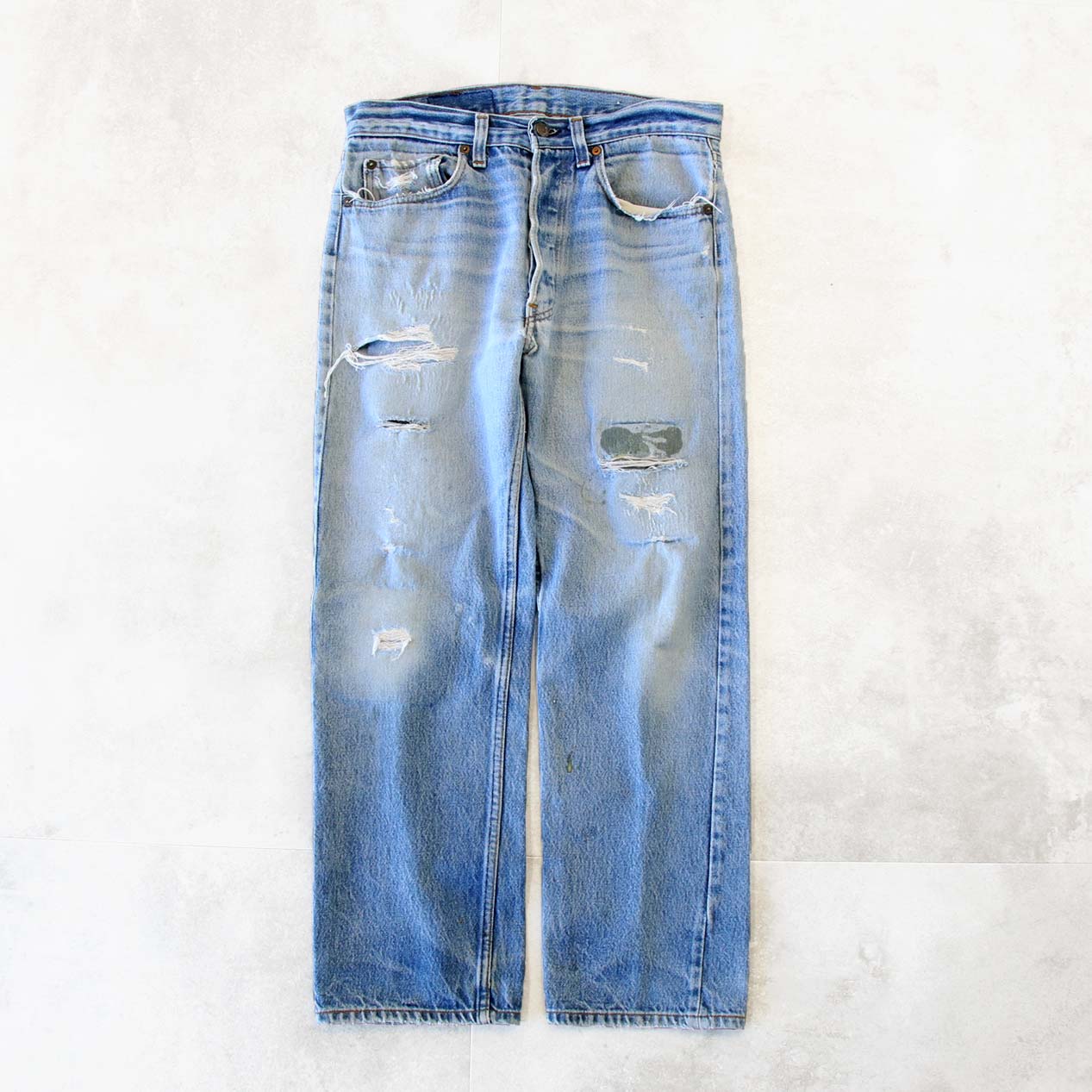 ・80’s LEVI’S 501 Damaged & Repaired Denim Pants Made In U.S.A. [W32]