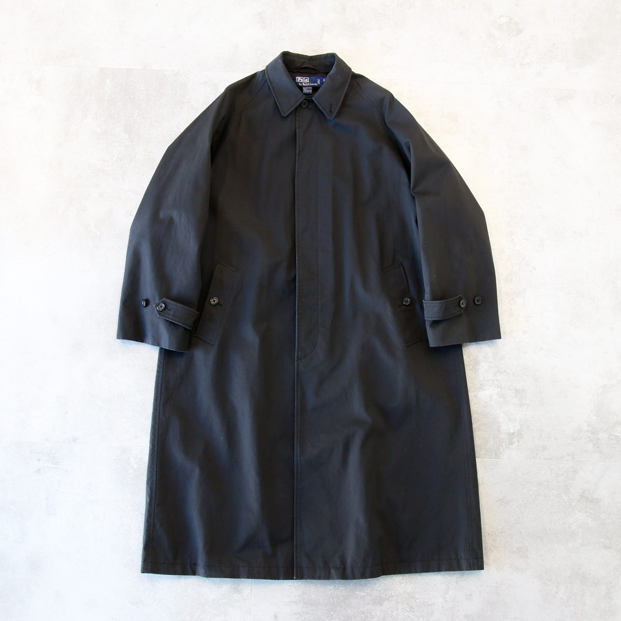 ・90’s POLO RALPH LAUREN “BLACK” All Cotton Gabardine Balmacaan Coat [S]