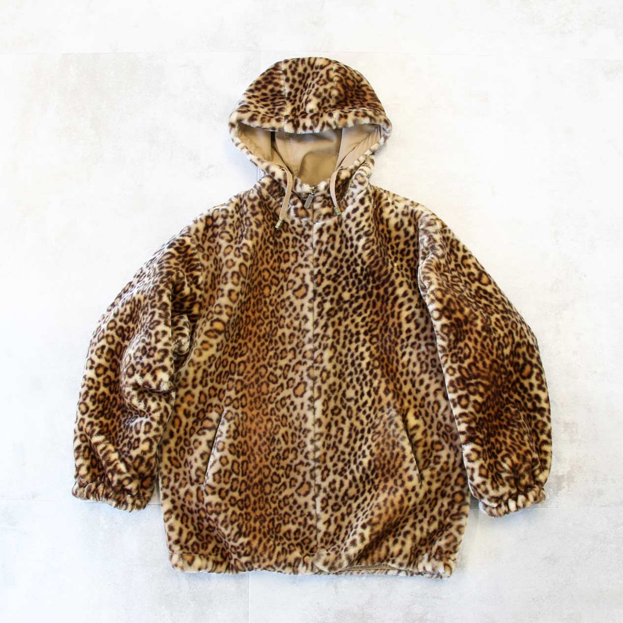・90’s IZZI ACTIVEWEAR Leopard Faux Fur Reversible Hooded Jacket [S]
