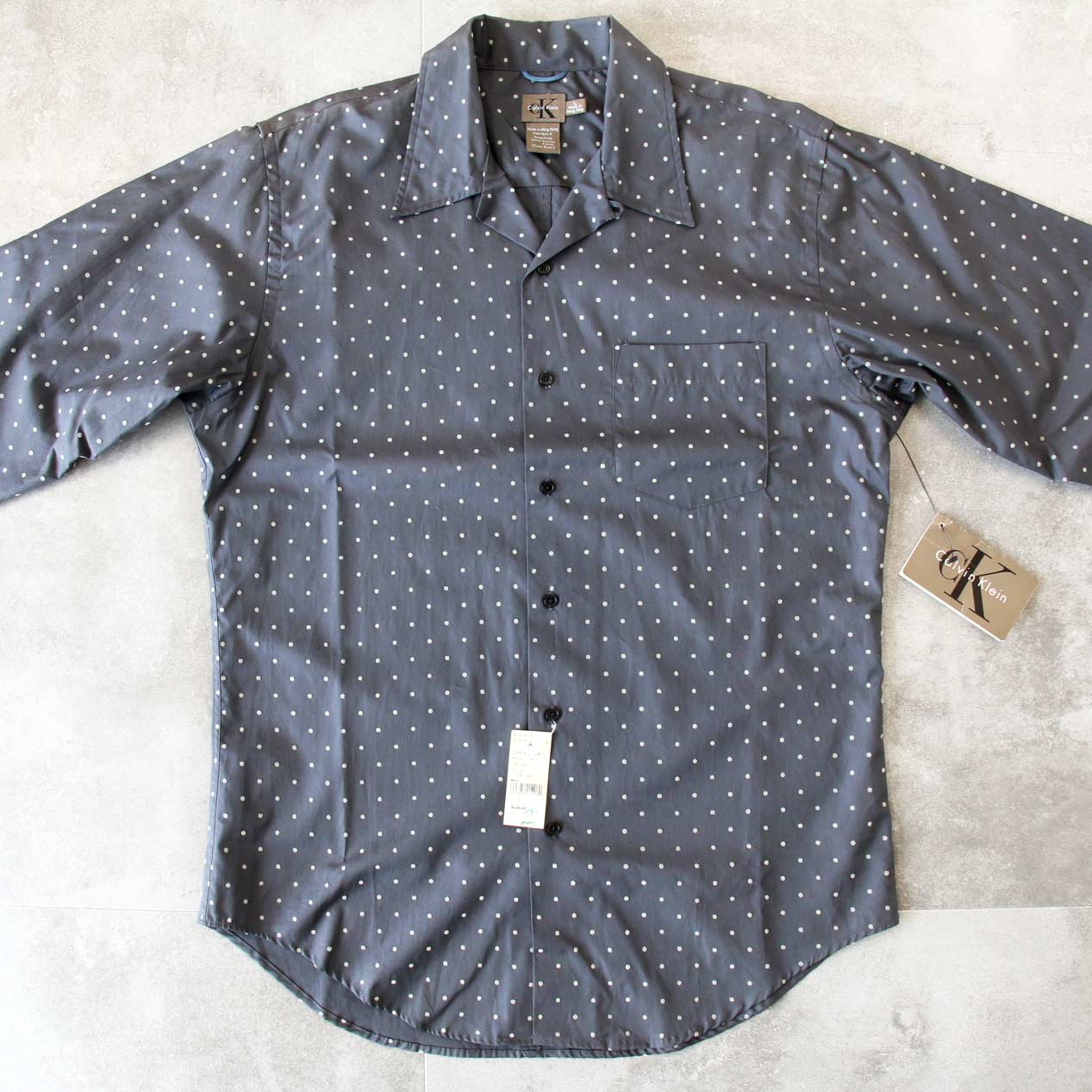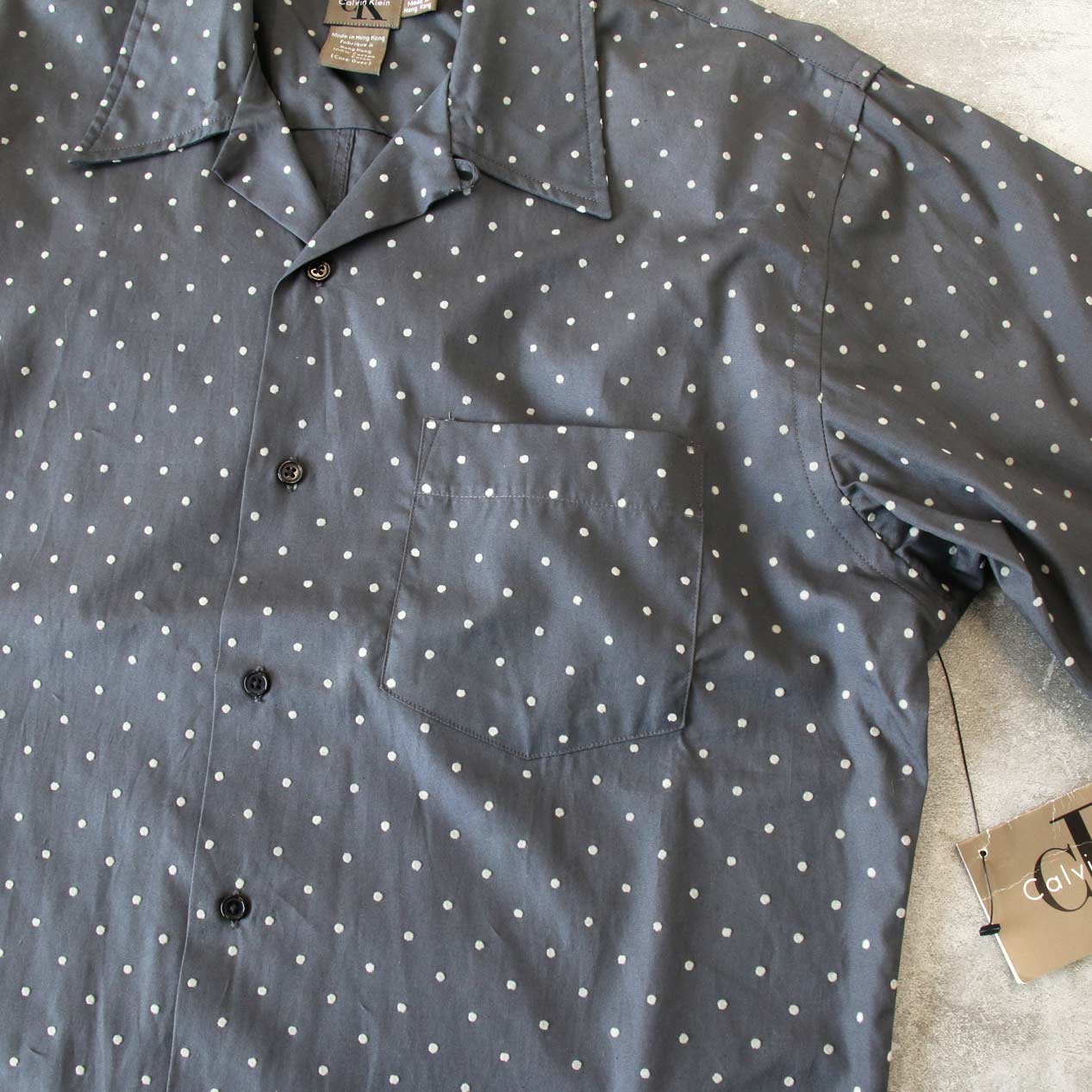 90’s CALVIN KLEIN Flock Dot Print Open Collar Shirt [NOS] [L]