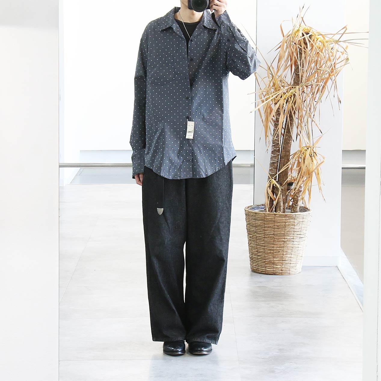 MODEL: CALVIN KLEIN Flock Dot Print Open Collar Shirt