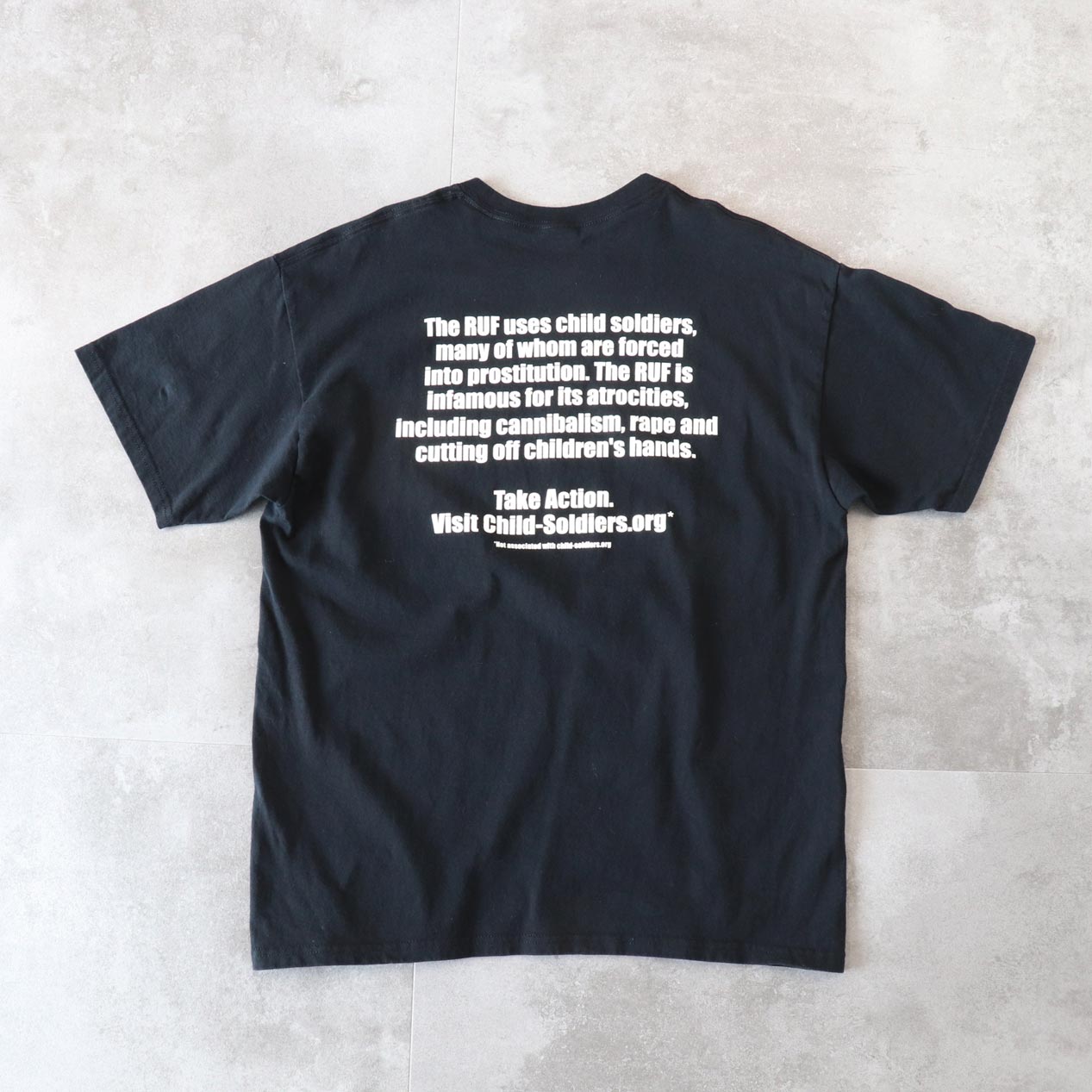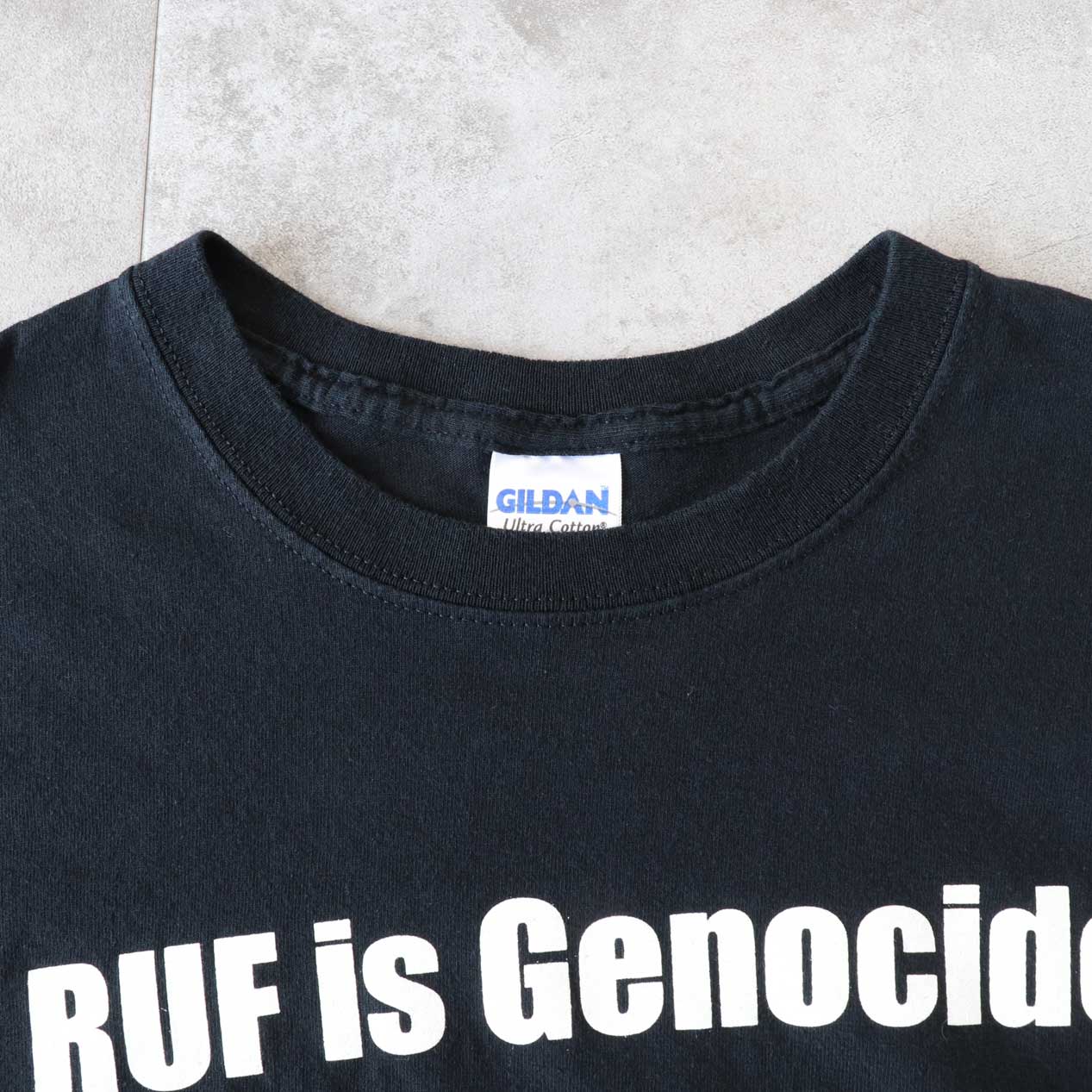 MODEL: RUF IS GENOCIDE MADE IN: Haiti AGE: 00's SIZE: L COLOR: ブラック MATERIAL: コットン 100% COMMENT: 00年代 アールユーエフ Tシャツ フロント/バックにラバープリント GILDANボディ/レギュラーウェイト天竺 袖・裾ともにダブルステッチ グッドコンディション ●BLOGでもご紹介しておりますので是非ご覧ください● SIZE DETAILS Size Chart 身幅: 57cm 着丈: 74cm 肩幅: 56cm 袖丈: 22cm ※着用モデル(男性): 身長176cm / 体重54kg CONDITION Condition Chart Rank "B" 着用感はあるが、汚れ・ダメージ・色褪せ等の無いまたは軽微な良好状態(下記詳細) ・全体: 軽微な着用感 ※その他詳細や詳しい画像をご覧になりたい場合はContact Formからお気軽にお問い合わせ下さい。