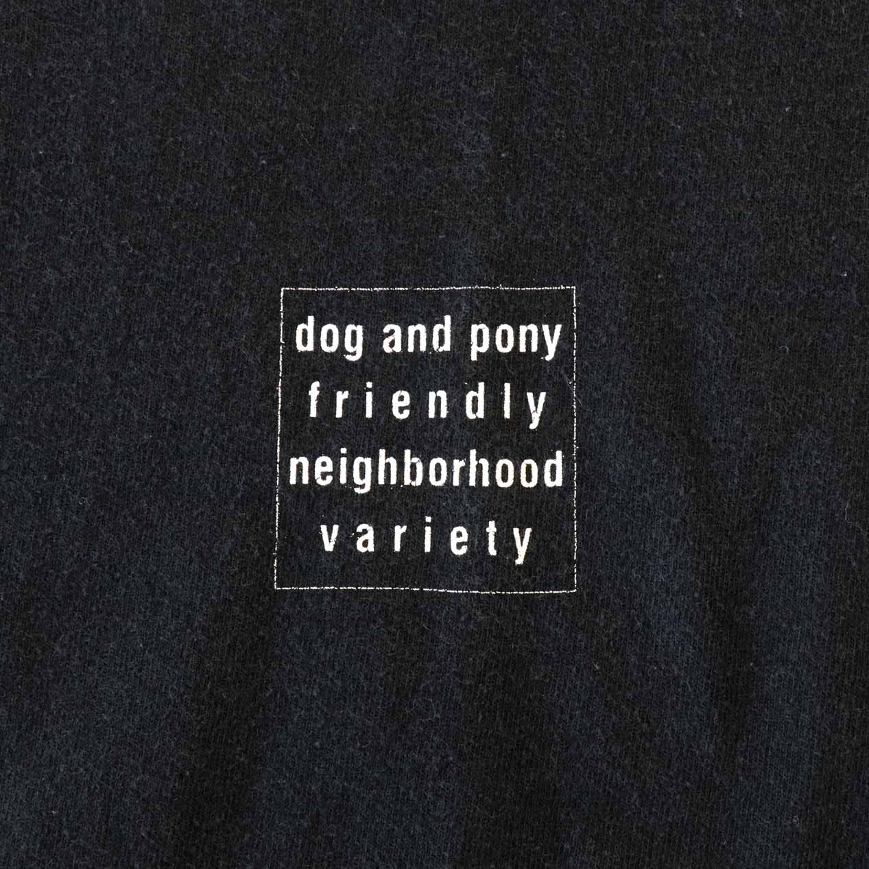 MODEL: DOG AND PONY FRIENDLY NEIGHBORHOOD VARIETY / LO-FI T-Shirt MADE IN: Dominican Republic AGE: 90's~ SIZE: L COLOR: ブラック MATERIAL: コットン 100% COMMENT: フロント/バックにラバープリント