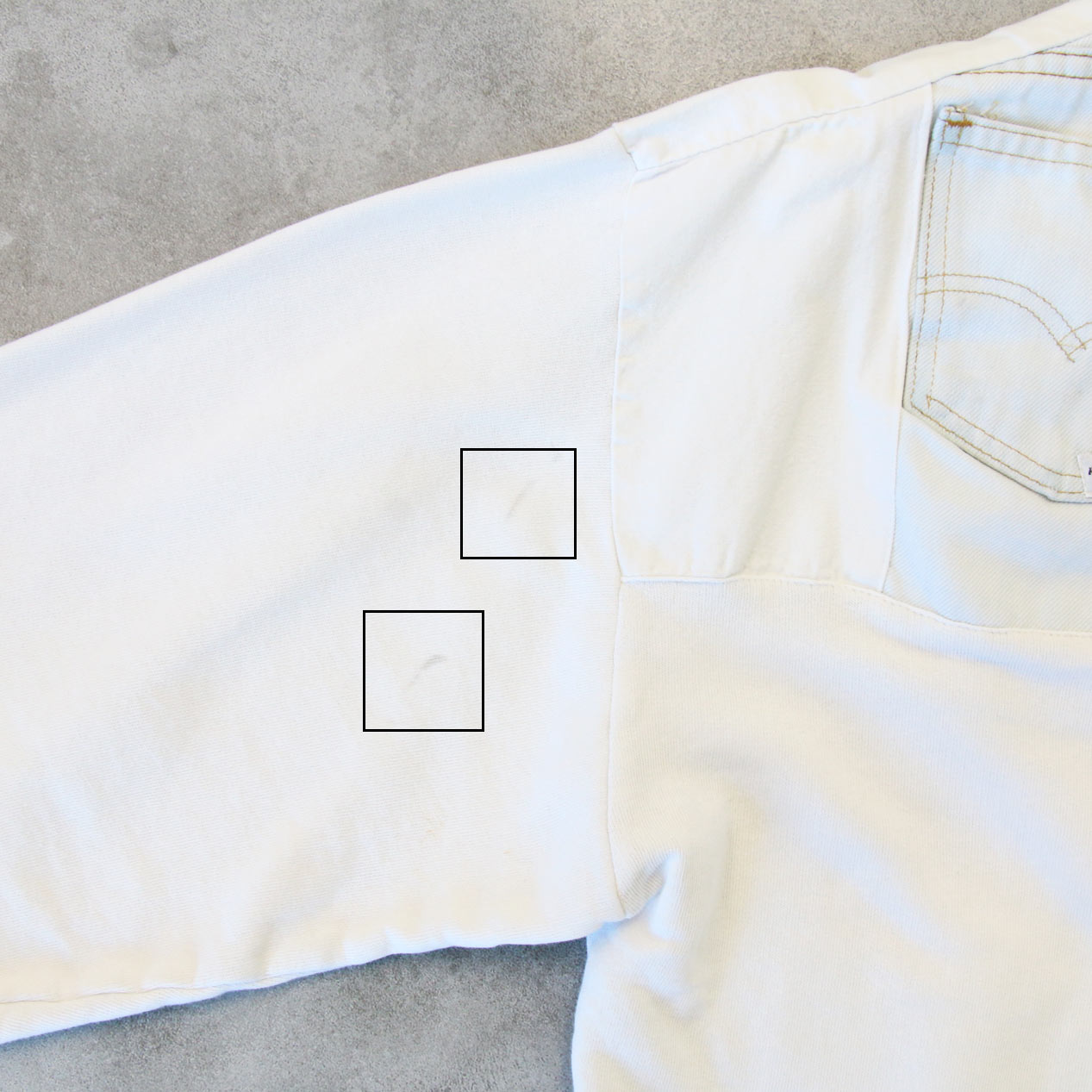 ・バック、袖: 右肩・左袖に汚れ