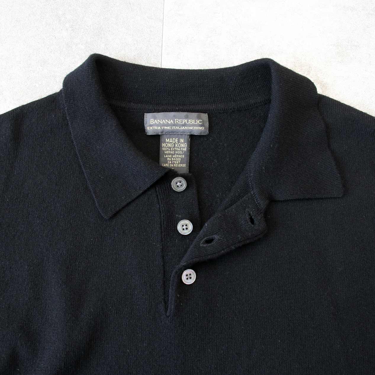 90’s BANANA REPUBLIC Polo Collared Knit Shirt Black [L]