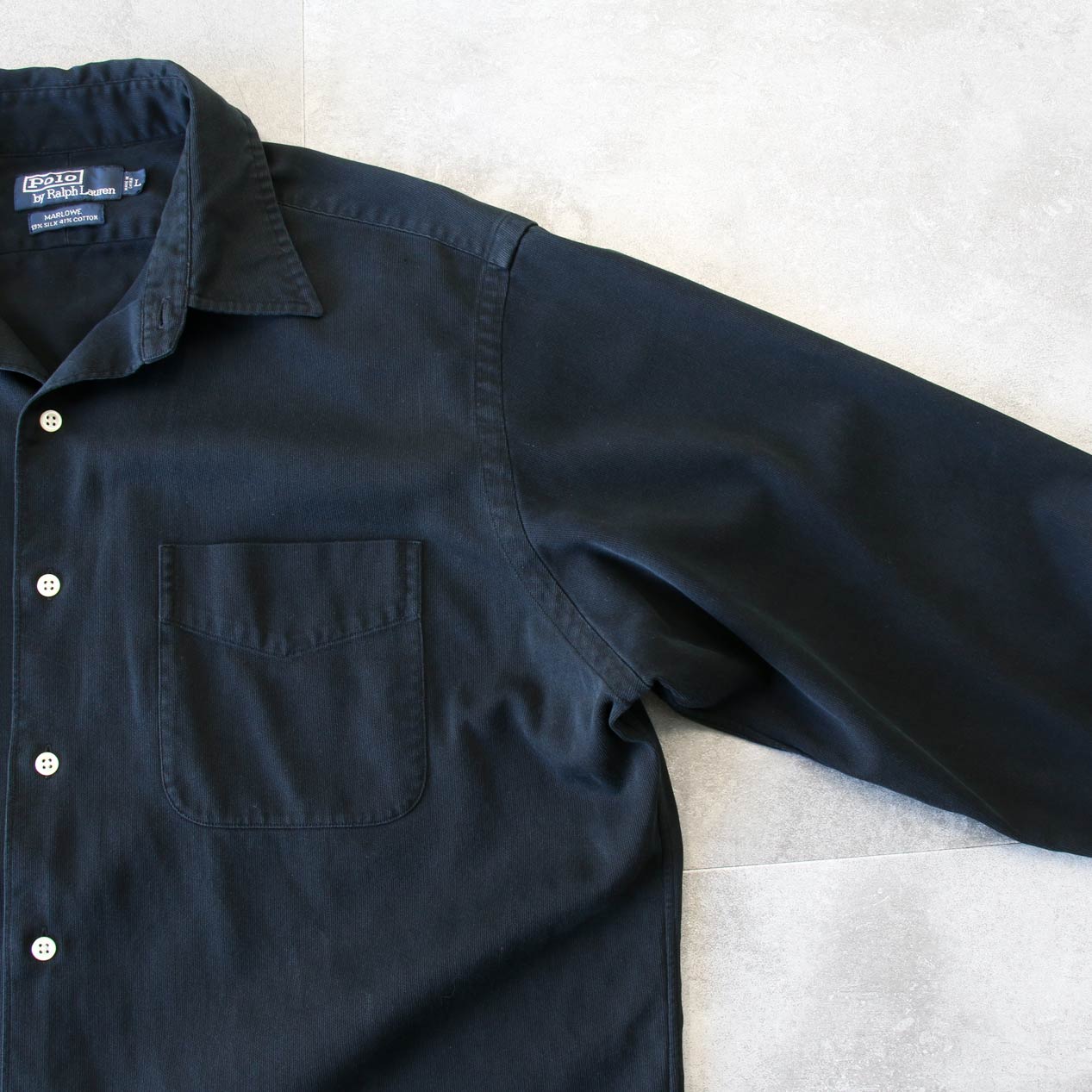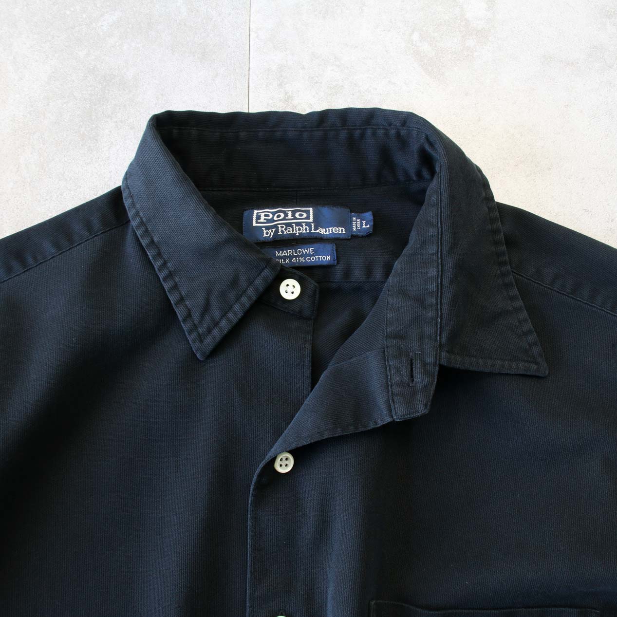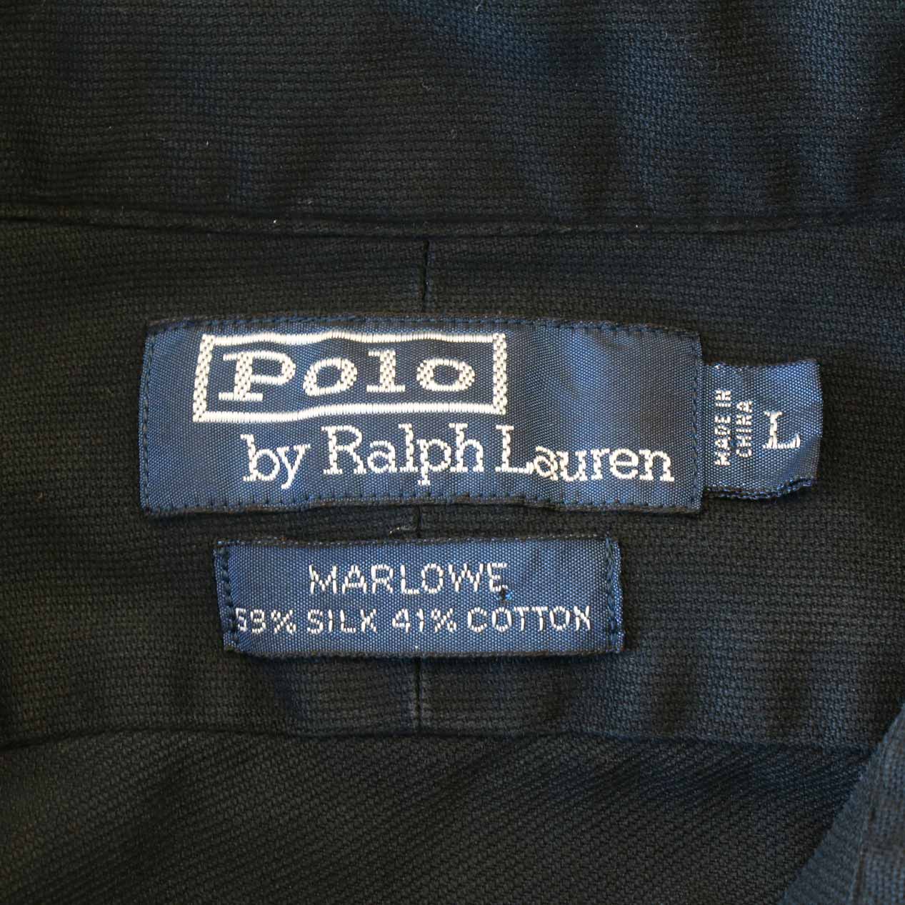 90’s POLO RALPH LAUREN / MARLOWE “BLACK” Silk / Cotton L/S Shirt [L]