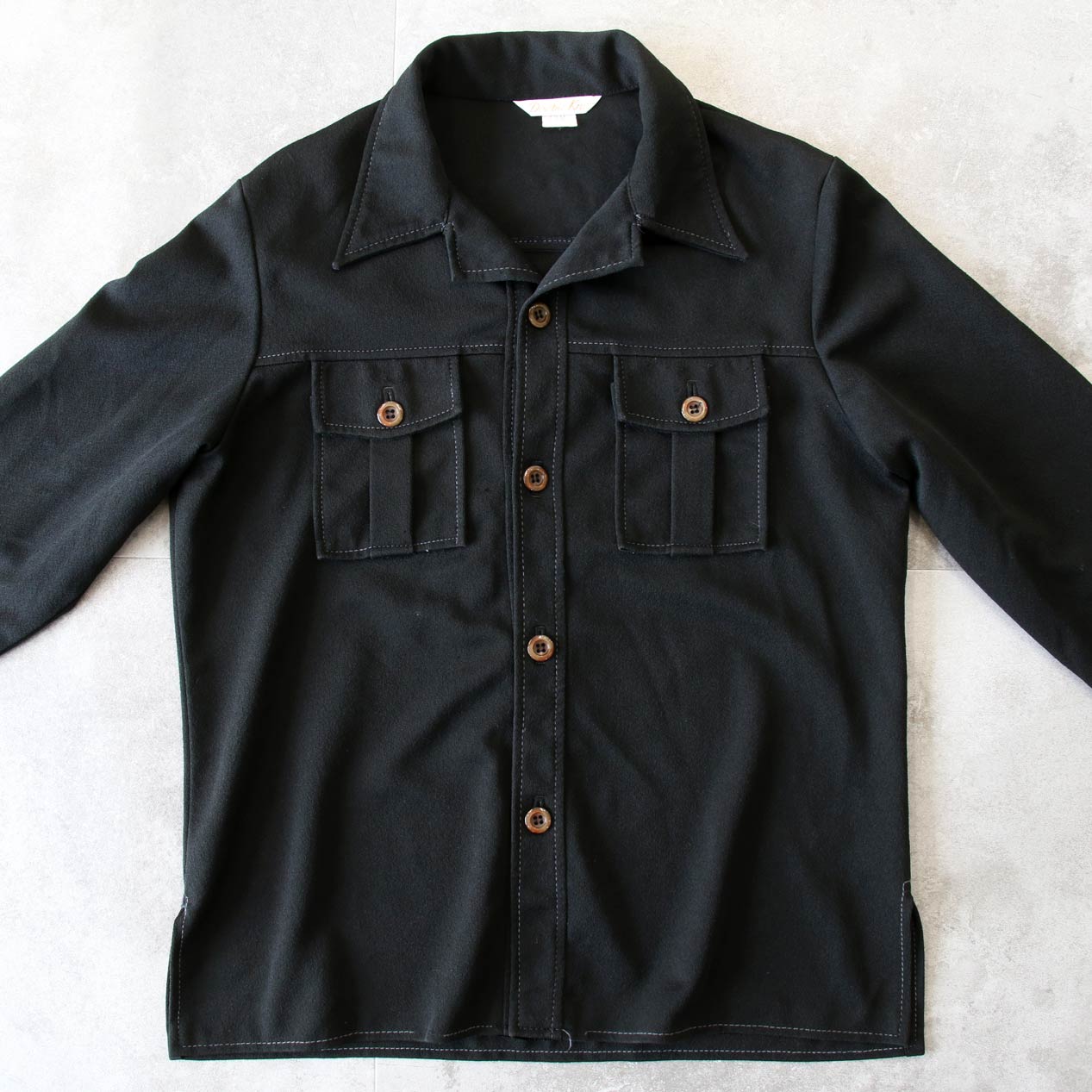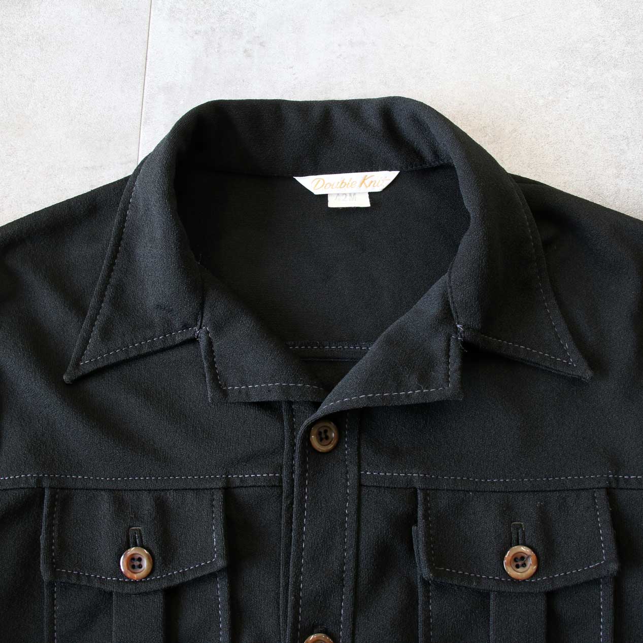 70’s DOUBLE KNIT Black Knit Shirt [42]