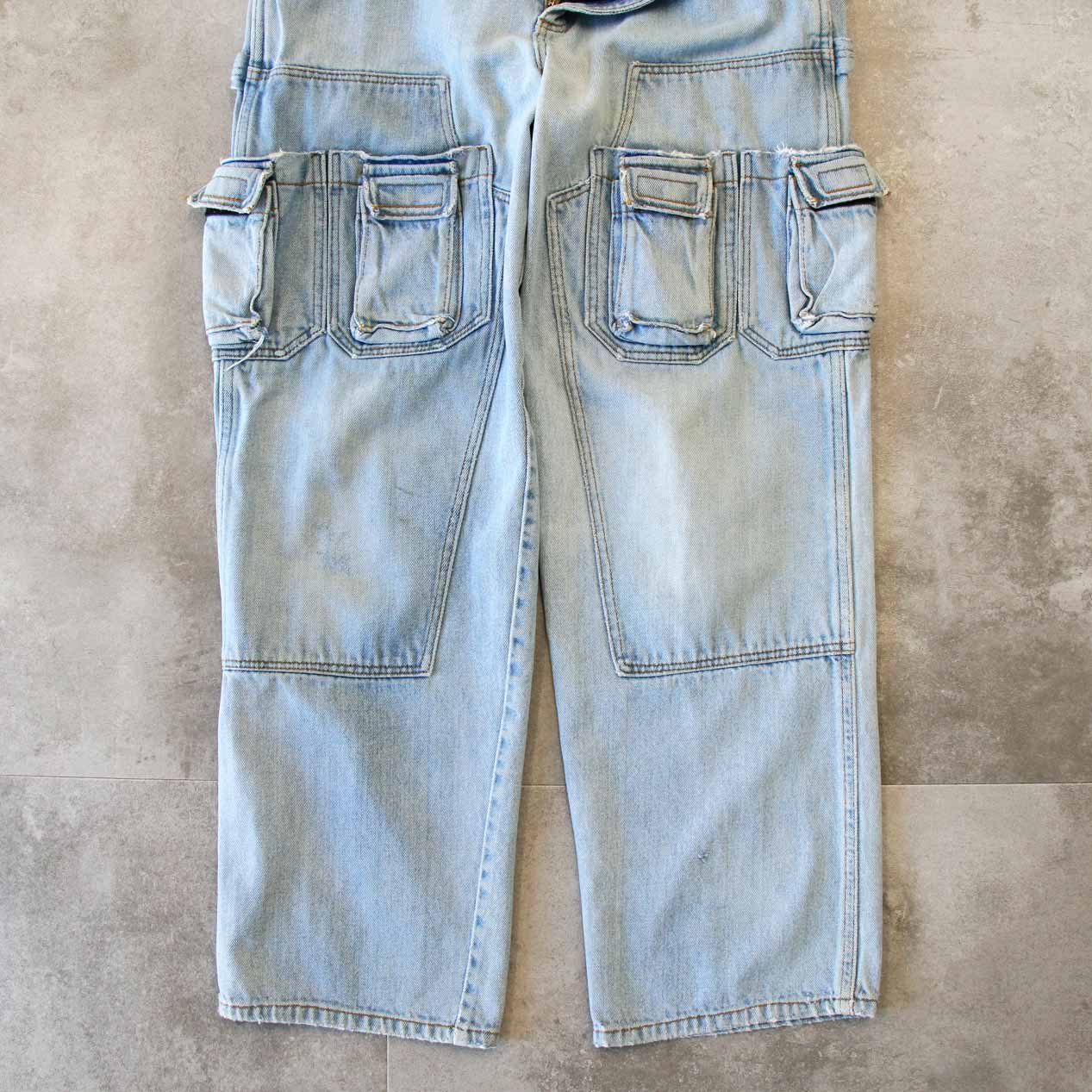 UNKNOWN Multi Pocket Double Knee Denim Pants [About W34]