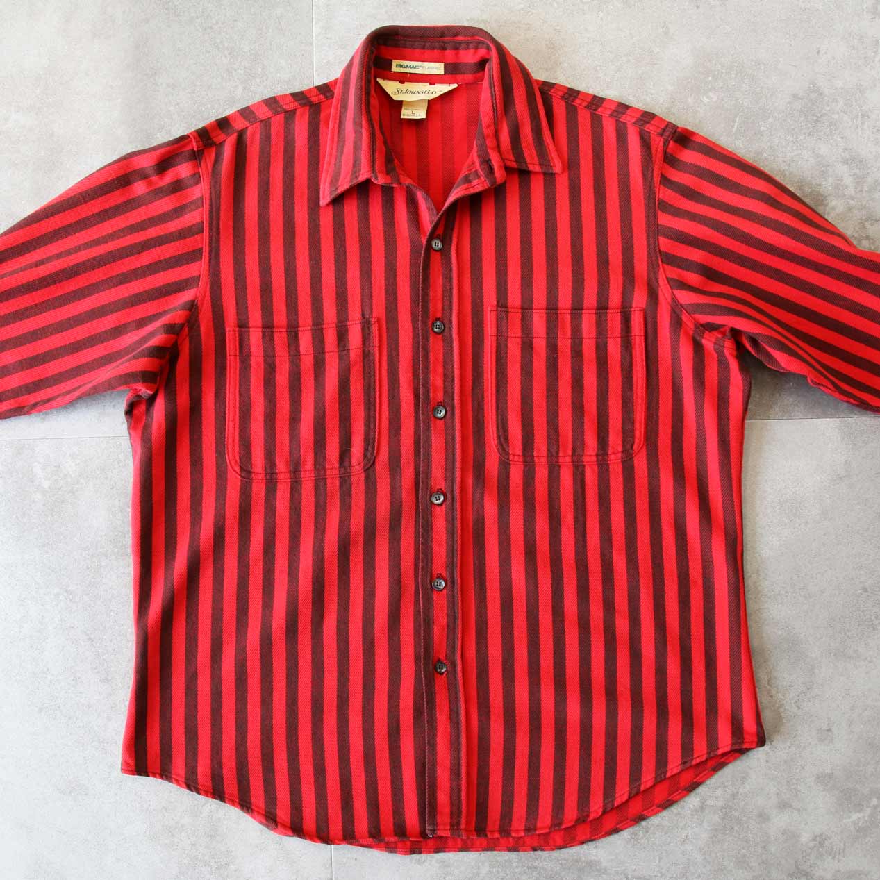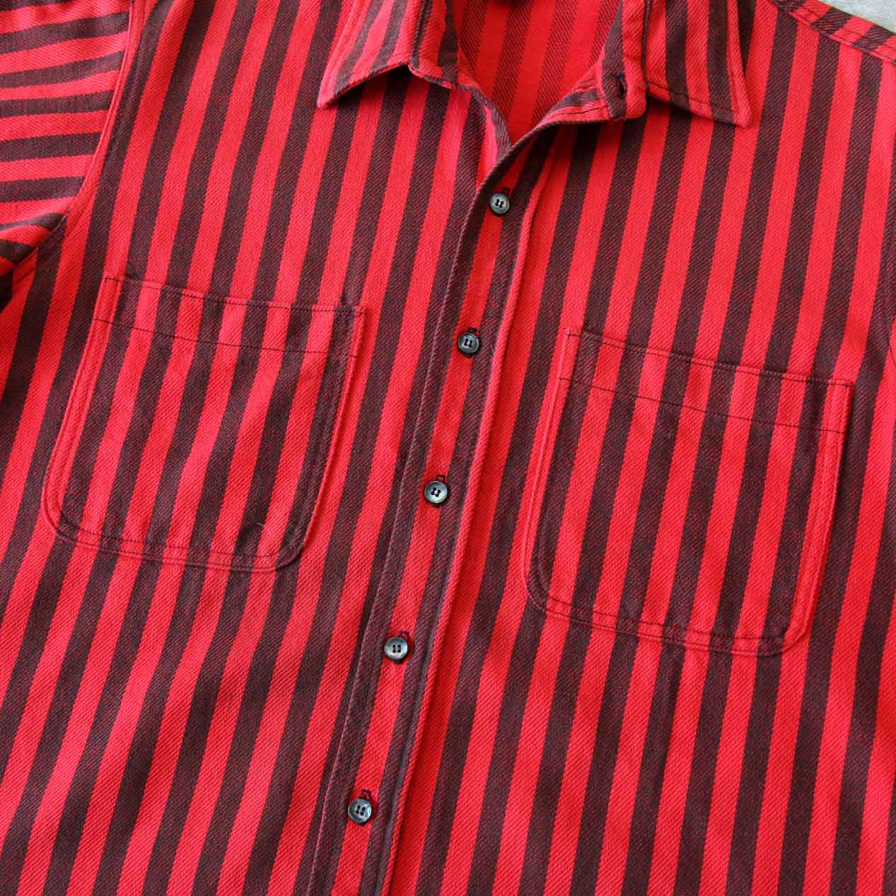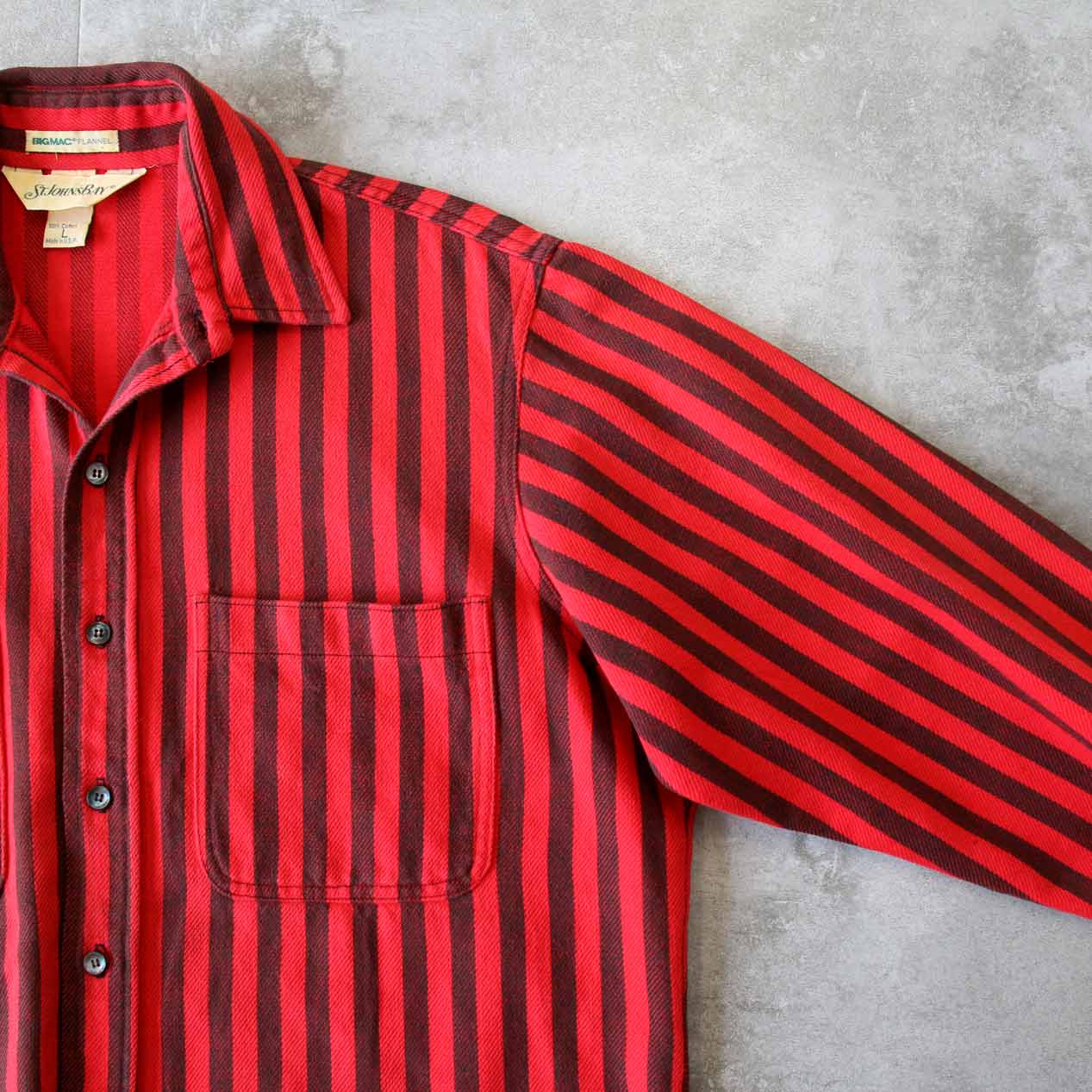 80’s ST JOHN’S BAY / BIG MAC Black x Red Striped Heavy Flannel Shirt Made In U.S.A. [L]