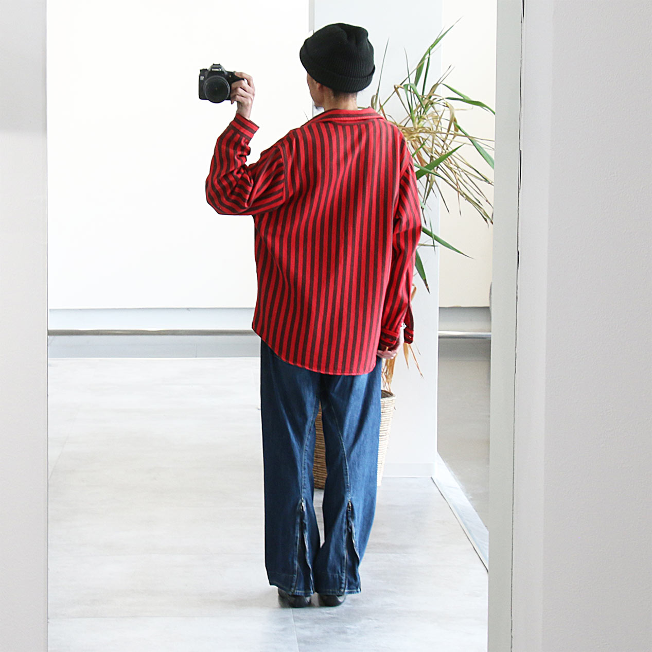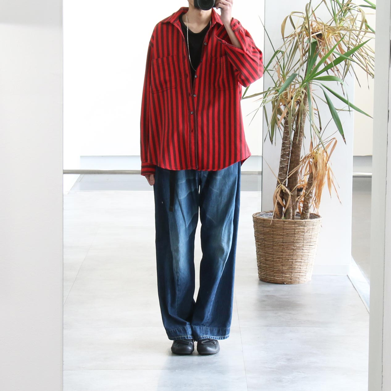 MODEL: ST JOHN’S BAY / BIG MAC Black x Red Striped Heavy Flannel Shirt