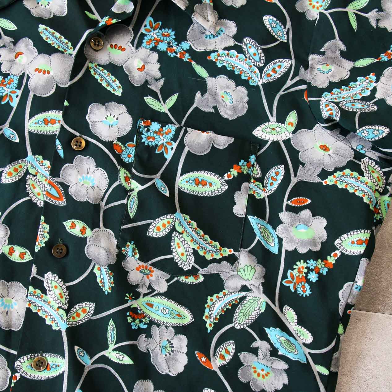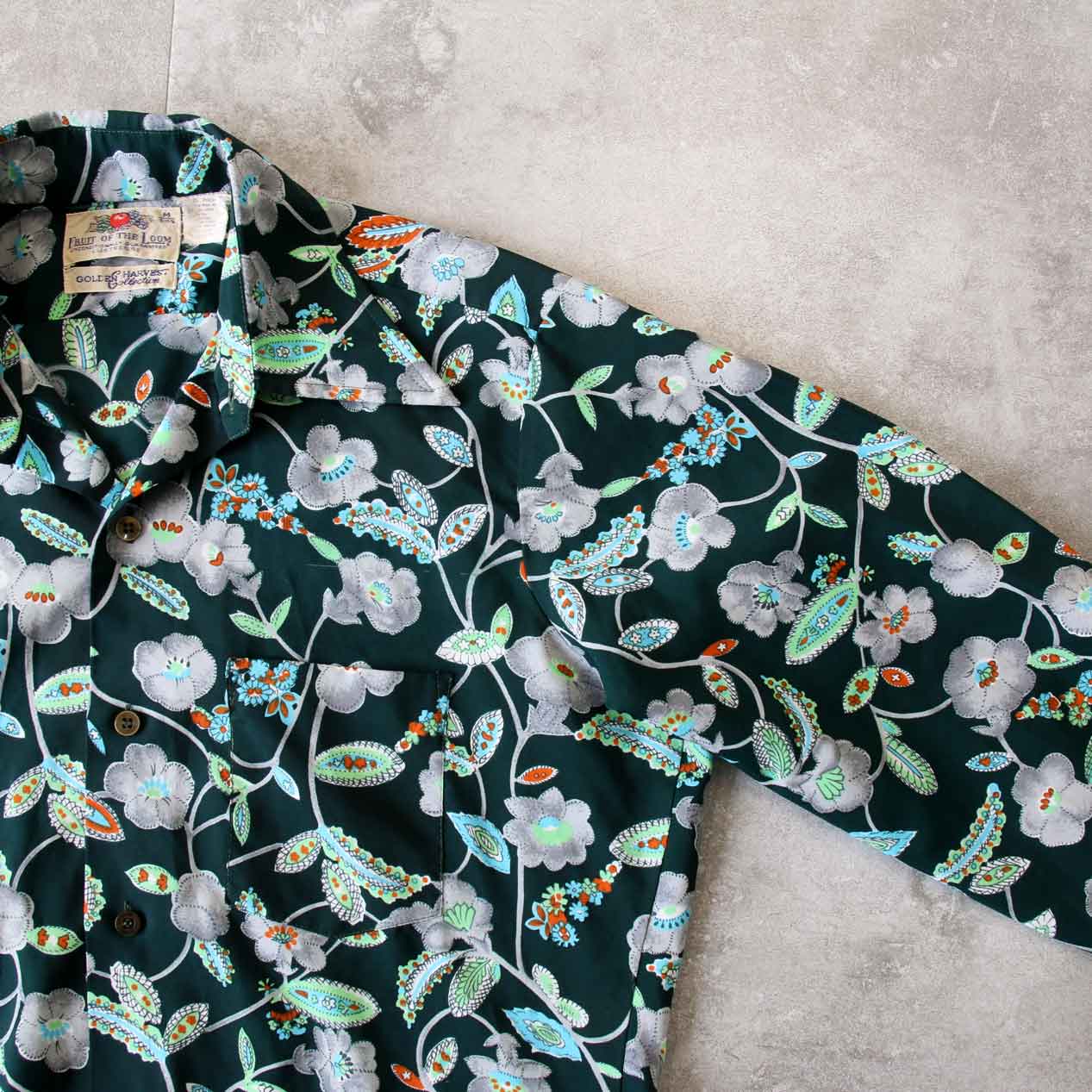 MODEL: FRUIT OF THE LOOM Flower Patterned Polyester Shirt MADE IN: Taiwan AGE: 70's SIZE: M COLOR: ディープグリーン MATERIAL: ポリエステル 100% COMMENT: 70年代 フルーツオブザルーム ポリエステルシャツ 左胸ポケット ●BLOGでもご紹介しておりますので是非ご覧ください● SIZE DETAILS Size Chart 身幅: 58cm 着丈: 75cm 肩幅: 45cm 袖丈: 58cm ※着用モデル(男性): 身長176cm / 体重54kg CONDITION Condition Chart Rank "C" 着用感があり、汚れ・ダメージ・色褪せが一部または全体にある状態(下記詳細) ・全体: 着用感 ・袖: 左袖に穴 ※その他詳細や詳しい画像をご覧になりたい場合はContact Formからお気軽にお問い合わせ下さい。