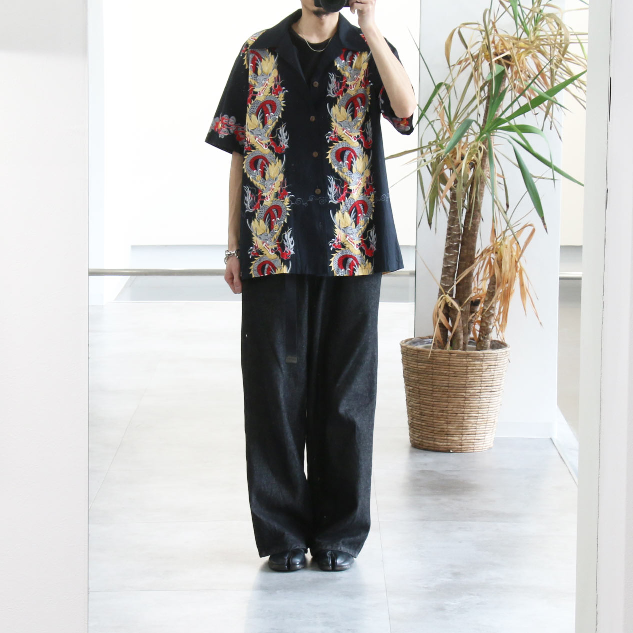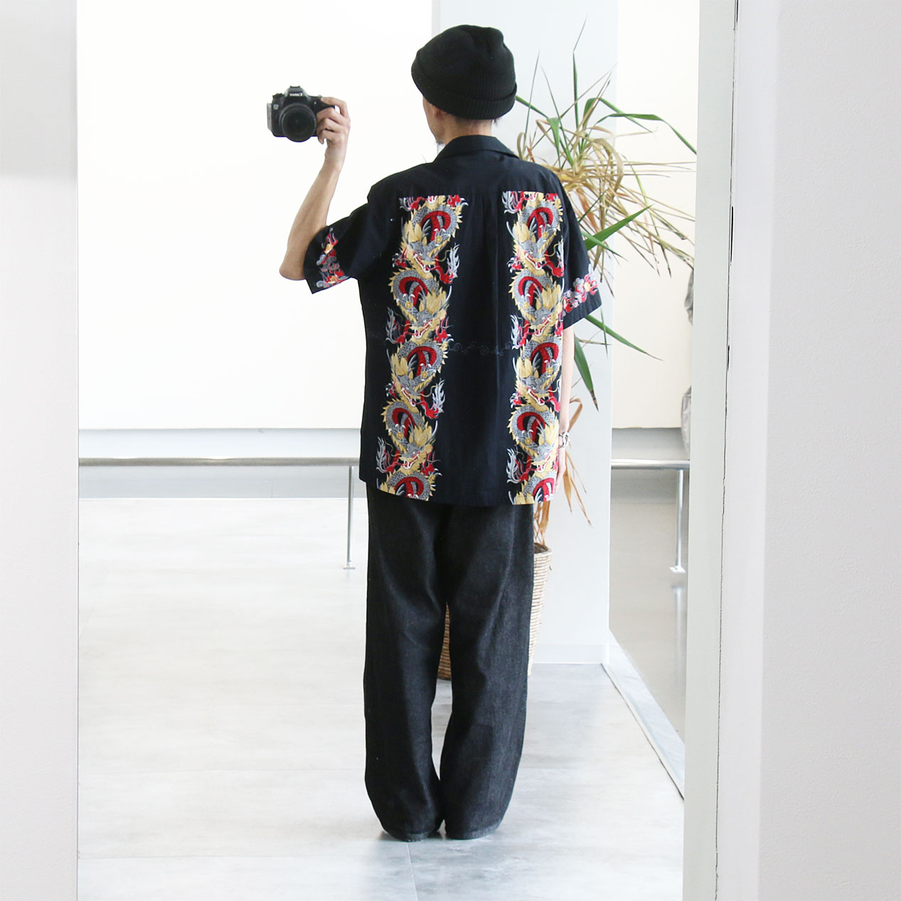 MODEL: H-FIVE-O Dragon Patterned Hawaiian Shirt MADE IN: U.S.A. AGE: 90's SIZE: L COLOR: ブラック MATERIAL: コットン 100% COMMENT: ドラゴンプリントパターン オープンカラー ●BLOGでもご紹介しておりますので是非ご覧ください● SIZE DETAILS Size Chart 身幅: 61cm 着丈: 77cm 肩幅: 50cm 袖丈: 25.5cm ※着用モデル(男性): 身長176cm / 体重54kg CONDITION Condition Chart Rank "B" 着用感はあるが、汚れ・ダメージ・色褪せ等の無いまたは軽微な良好状態(下記詳細) ・全体: 軽微な着用感 ・フロント: 最下部ボタン替え ※その他詳細や詳しい画像をご覧になりたい場合はContact Formからお気軽にお問い合わせ下さい。