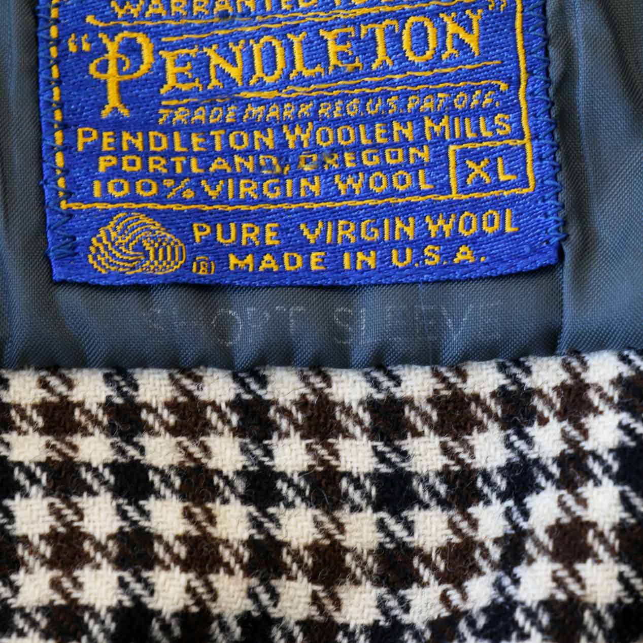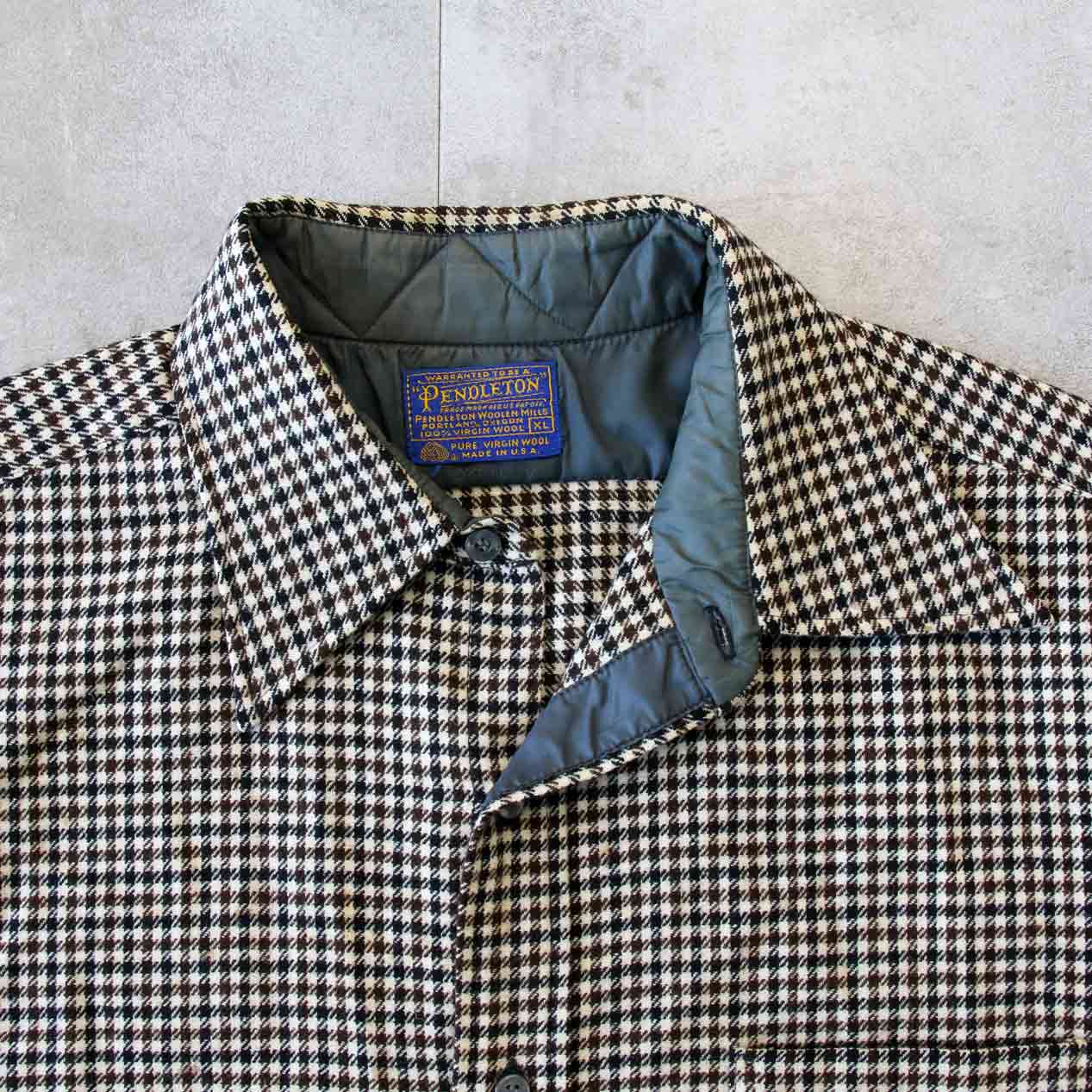 70’s PENDLETON Woven Gun Club Plaid Wool S/S Shirt Made In U.S.A. [XL]