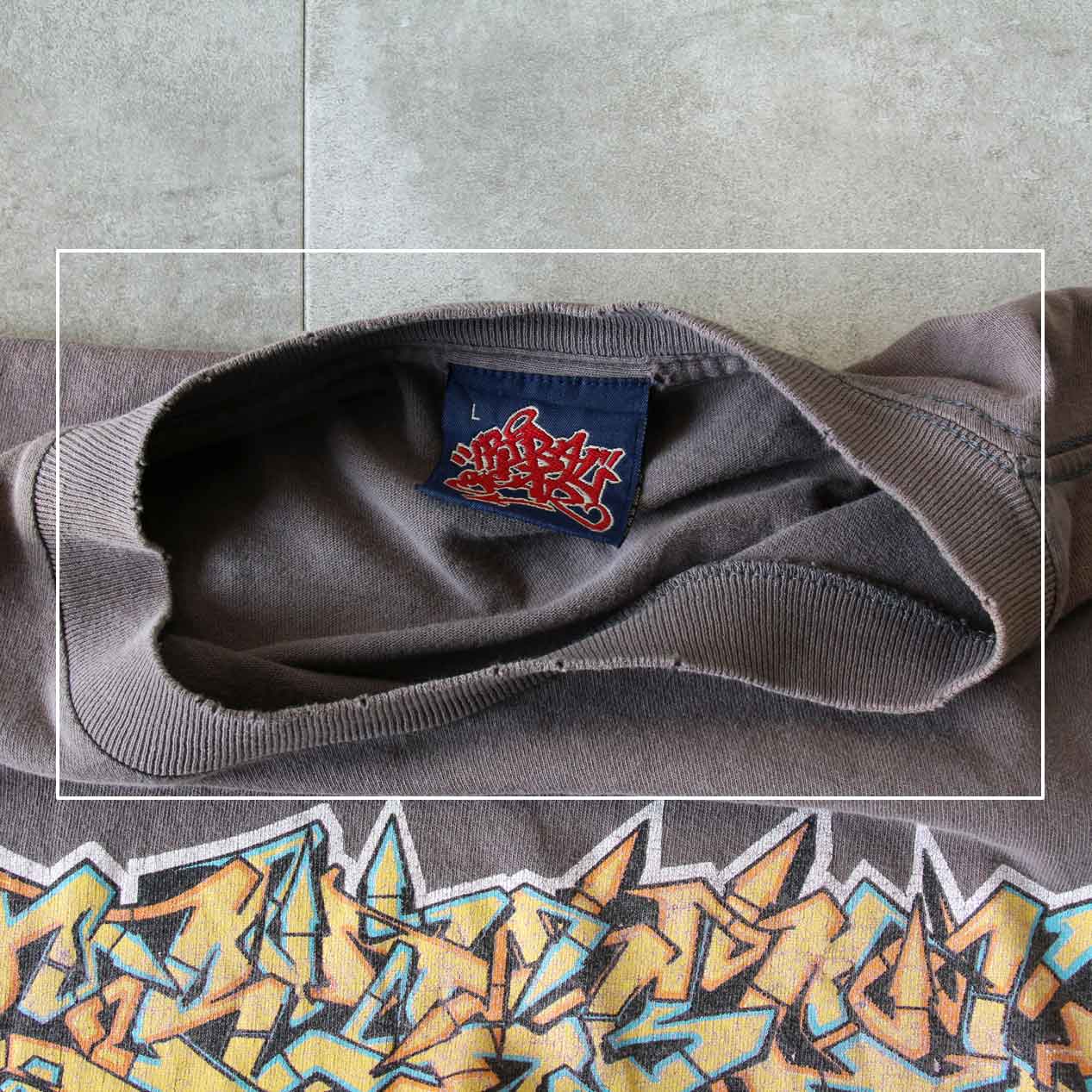 MODEL: TRIBAL GEAR T-Shirt MADE IN: U.S.A. AGE: 90's SIZE: L COLOR: グレー MATERIAL: コットン 100% COMMENT: 90年代 トライバルギア Tシャツ フロント/バック ラバープリント レギュラーウェイト天竺 袖/裾ともにダブルステッチ ●BLOGでもご紹介しておりますので是非ご覧ください● SIZE DETAILS Size Chart 身幅: 57cm 着丈: 73.5cm 肩幅: 53cm 袖丈: 21cm ※着用モデル(男性): 身長176cm / 体重54kg CONDITION Condition Chart Rank "C" 着用感があり、汚れ・ダメージ・色褪せが一部または全体にある状態(下記詳細) ・全体: 着用感、襟リブ端周囲に小穴、身頃裾ステッチ切れ ・フロント: 両肩にヤケ ・バック: 左肩に小穴 ※その他詳細や詳しい画像をご覧になりたい場合はContact Formからお気軽にお問い合わせ下さい。