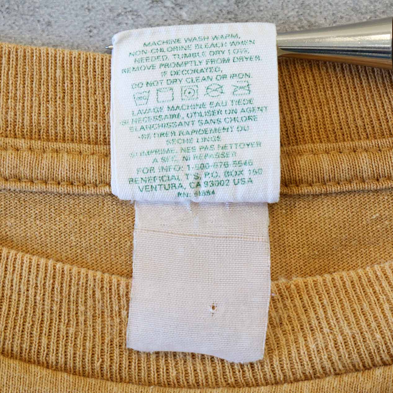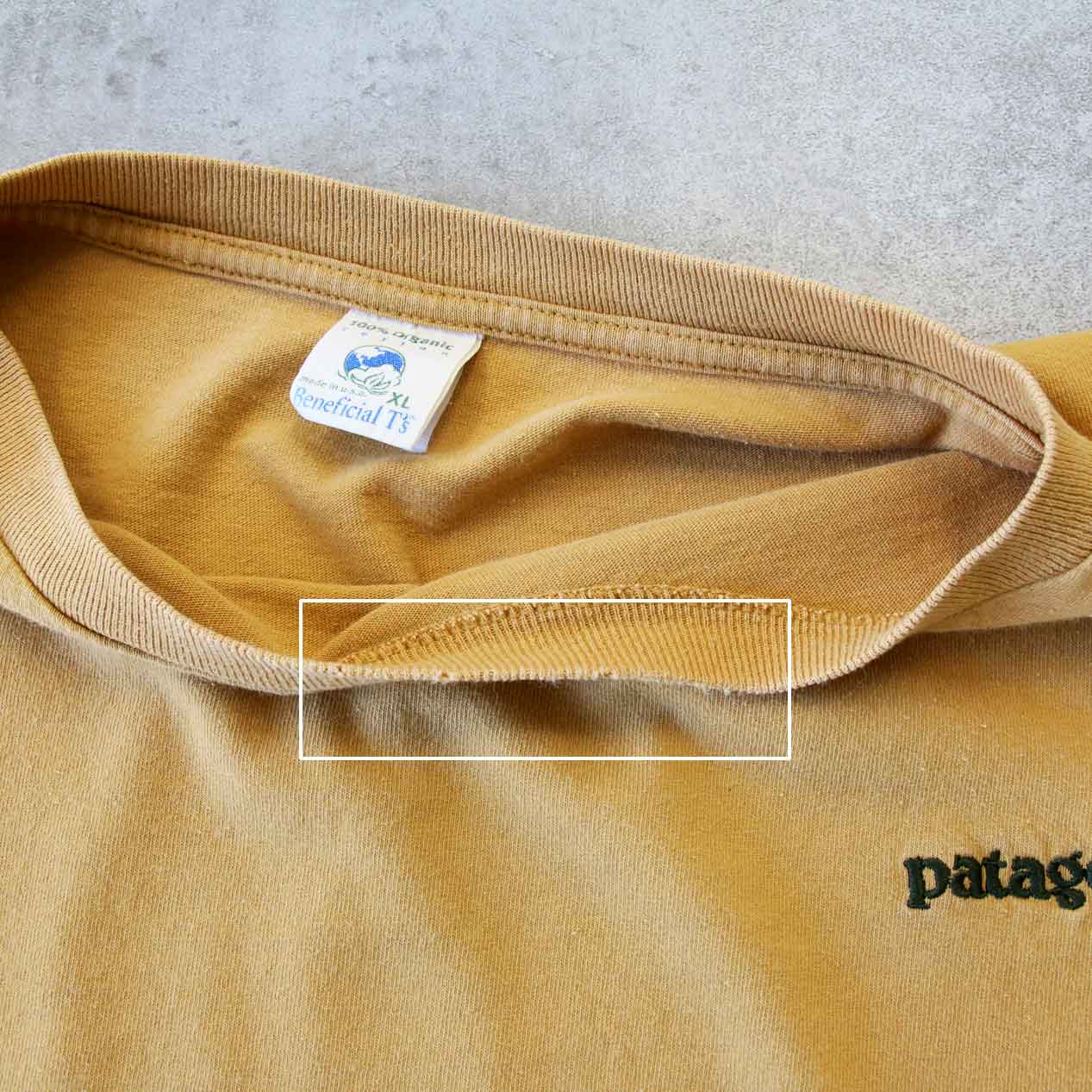 MODEL: PATAGONIA Beneficial T’s Embroidered Logo L/S T-Shirt MADE IN: U.S.A. AGE: 90's SIZE: XL COLOR: マスタード MATERIAL: コットン 100% COMMENT: 90年代 パタゴニア ベネフィシャル ロングスリーブTシャツ 左胸 刺繍ロゴ バックプリント無し ●BLOGでもご紹介しておりますので是非ご覧ください● SIZE DETAILS Size Chart 身幅: 64cm 着丈: 74cm 肩幅: 58cm 袖丈: 63cm ※着用モデル(男性): 身長176cm / 体重54kg CONDITION Condition Chart Rank "C" 着用感があり、汚れ・ダメージ・色褪せが一部または全体にある状態(下記詳細) ・全体: 着用感、色褪せ、襟リブ端に小穴 ※その他詳細や詳しい画像をご覧になりたい場合はContact Formからお気軽にお問い合わせ下さい。