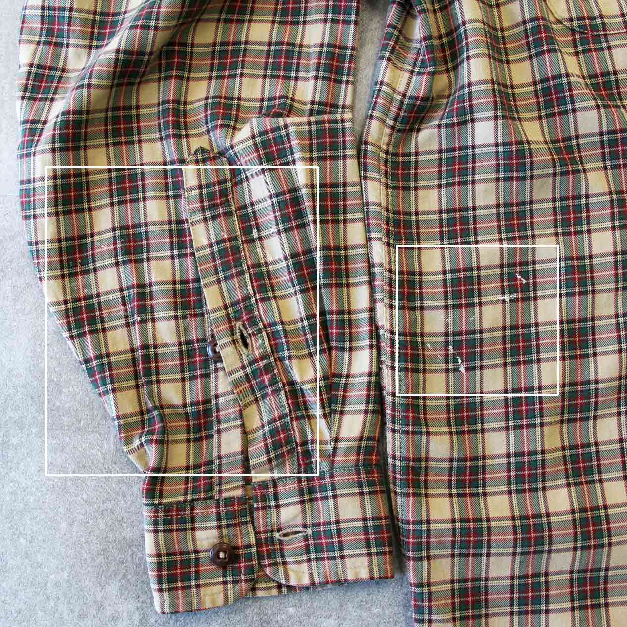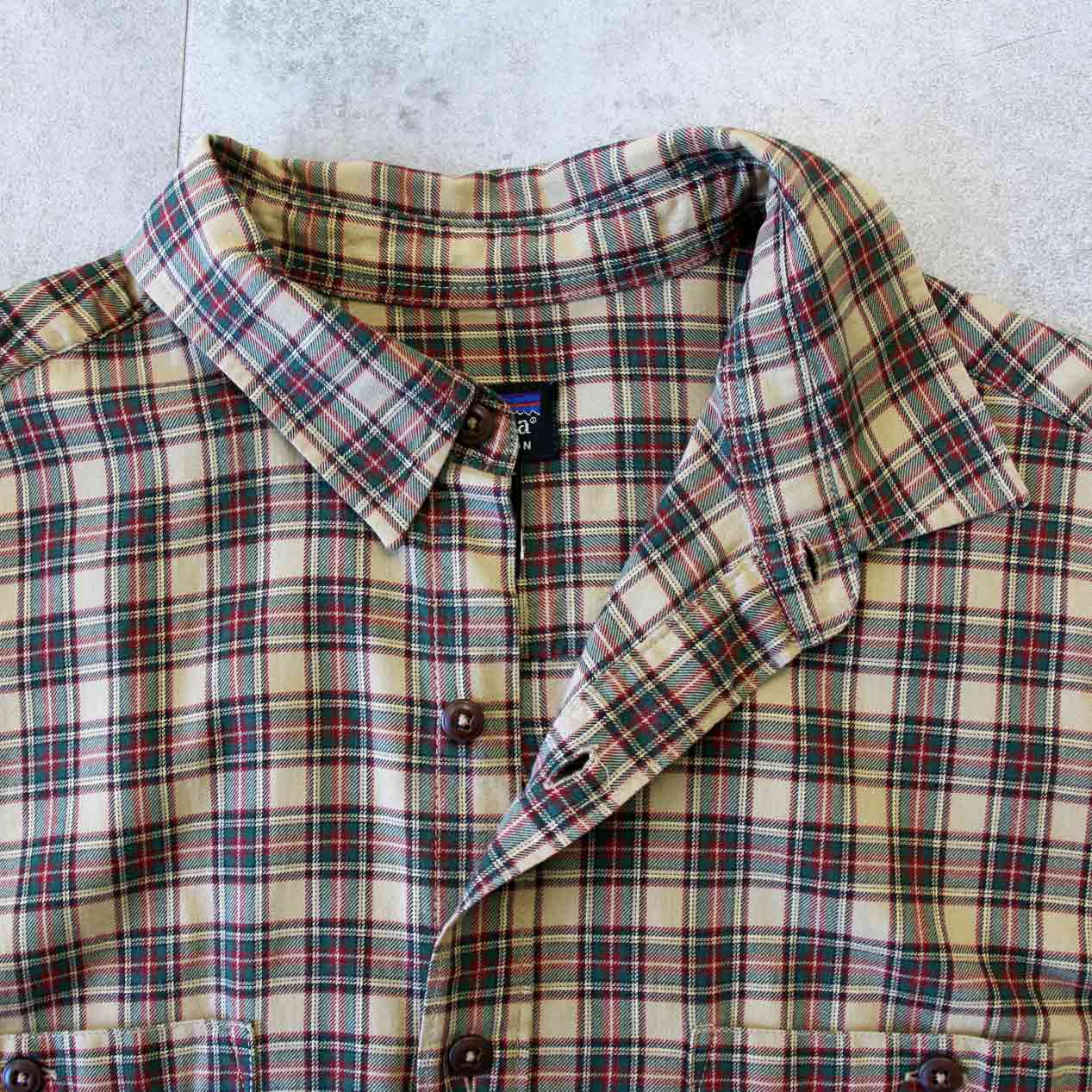 MODEL: PATAGONIA Organic Cotton Woven Plaid L/S Shirt MADE IN: Portugal AGE: 90's SIZE: M COLOR: ブラウン系 MATERIAL: コットン 100% COMMENT: 90年代 パタゴニア 先染めチェックパターン レギュラーカラー 両胸ポケット ●BLOGでもご紹介しておりますので是非ご覧ください● SIZE DETAILS Size Chart 身幅: 61cm 着丈: 79cm 肩幅: 48cm 袖丈: 60cm ※着用モデル(男性): 身長176cm / 体重54kg CONDITION Condition Chart Rank "C" 着用感があり、汚れ・ダメージ・色褪せが一部または全体にある状態(下記詳細) ・全体: 着用感 ・バック、袖: 左脇/左袖先にペンキ飛び ※その他詳細や詳しい画像をご覧になりたい場合はContact Formからお気軽にお問い合わせ下さい。