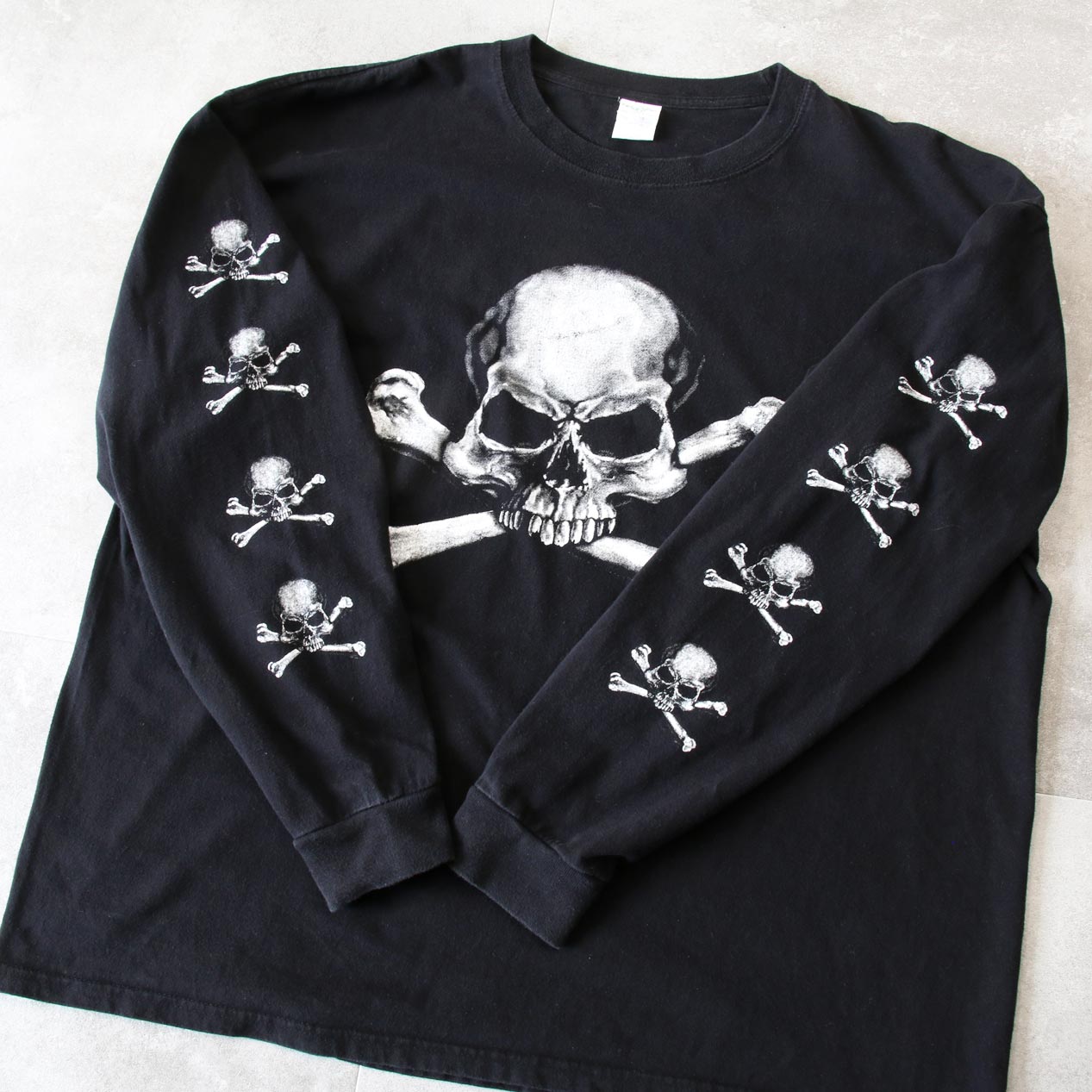 00’s UNKNOWN Skull & Crossbones Wide Shaped L/S T-Shirt [2XL]