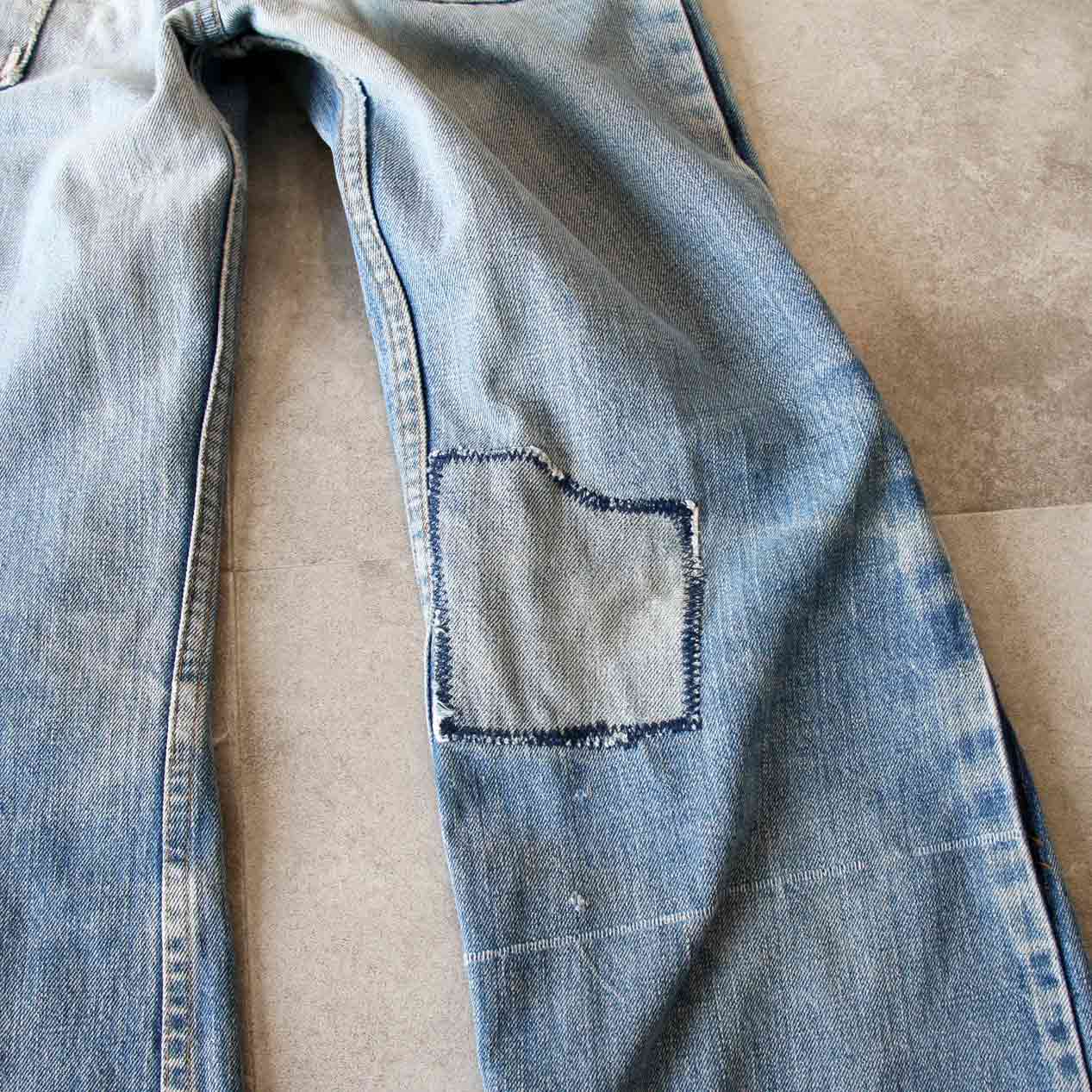 ・全体: 着用感、色褪せ、スレ、リペア、両サイドシームにステッチ解き跡