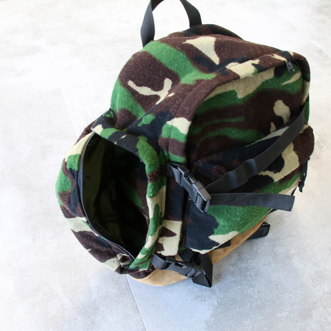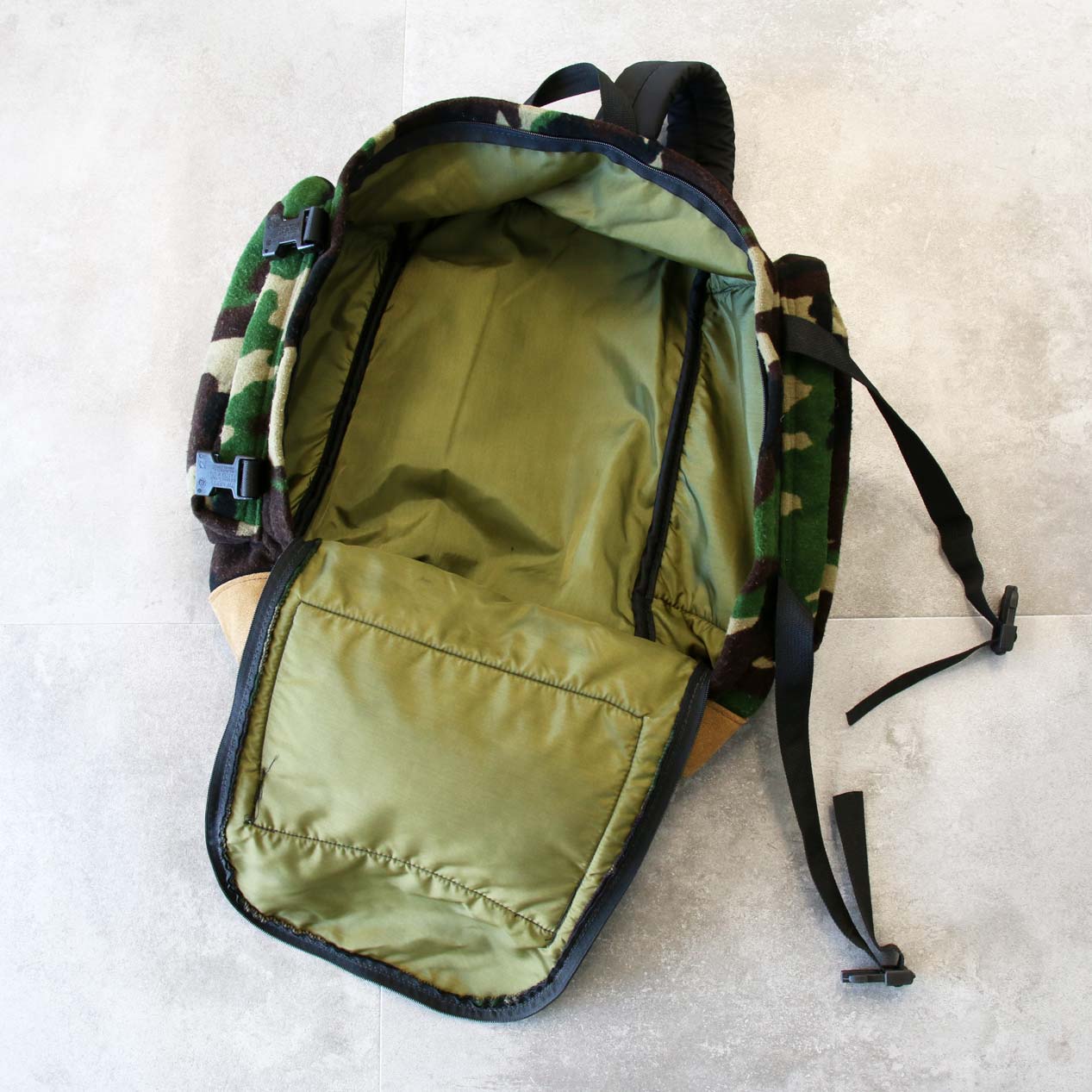 MODEL: CABELA’S Woodland Camo Printed Fleece Backpack