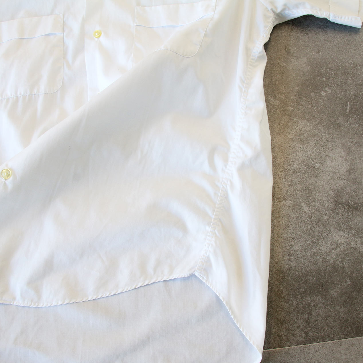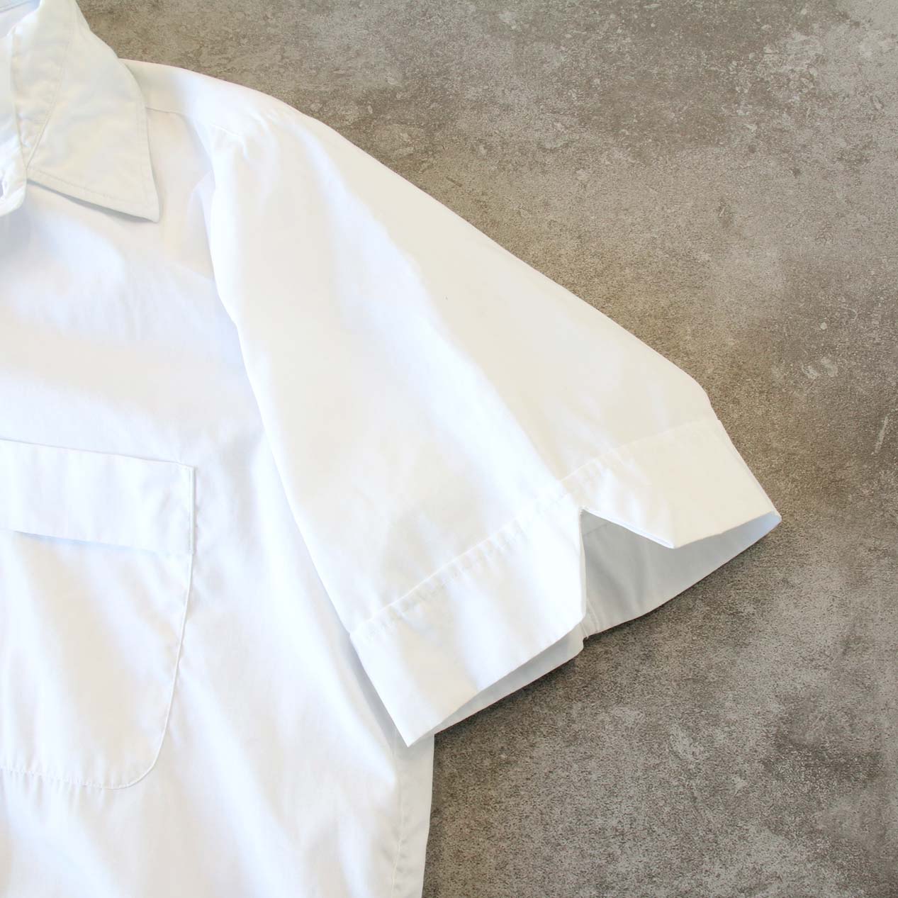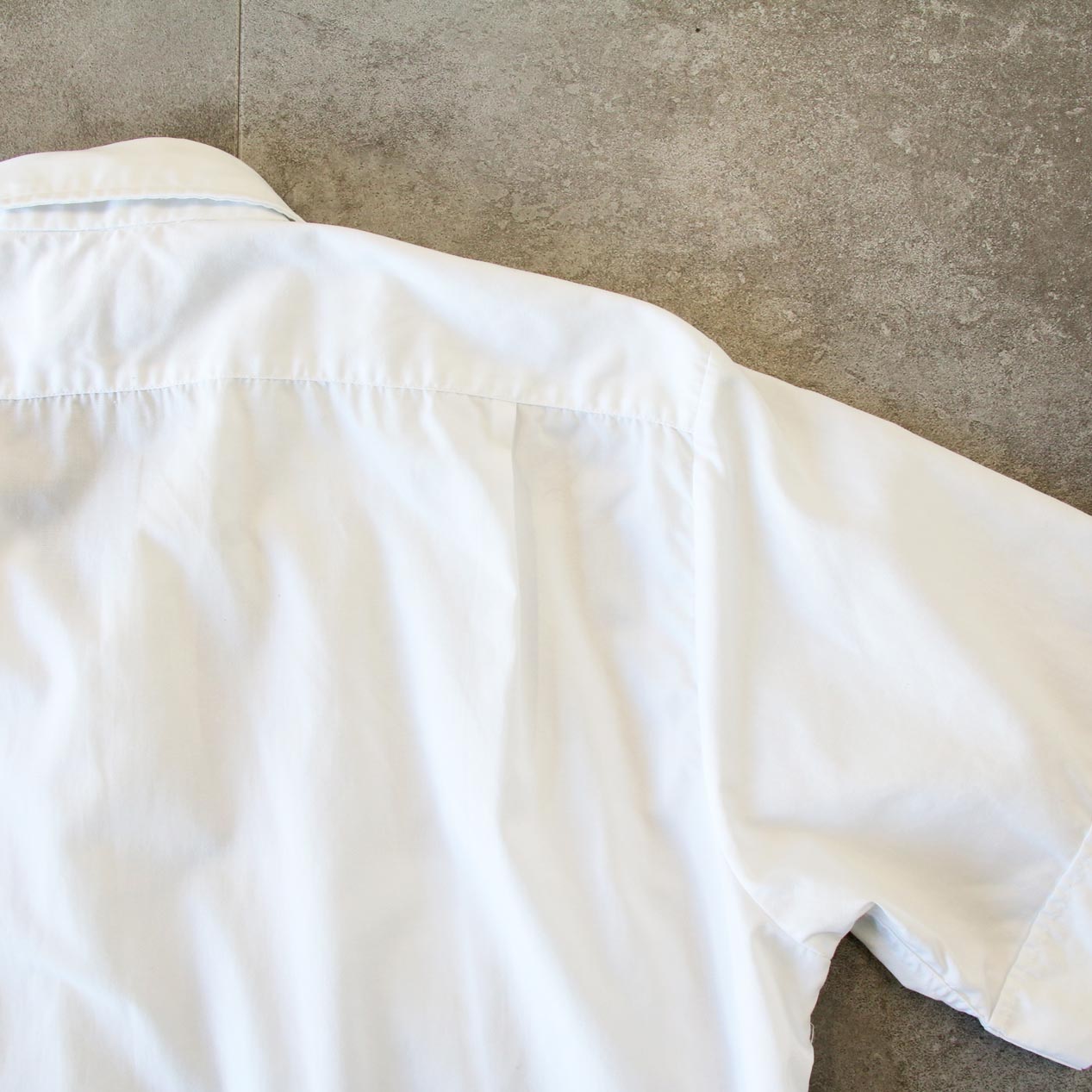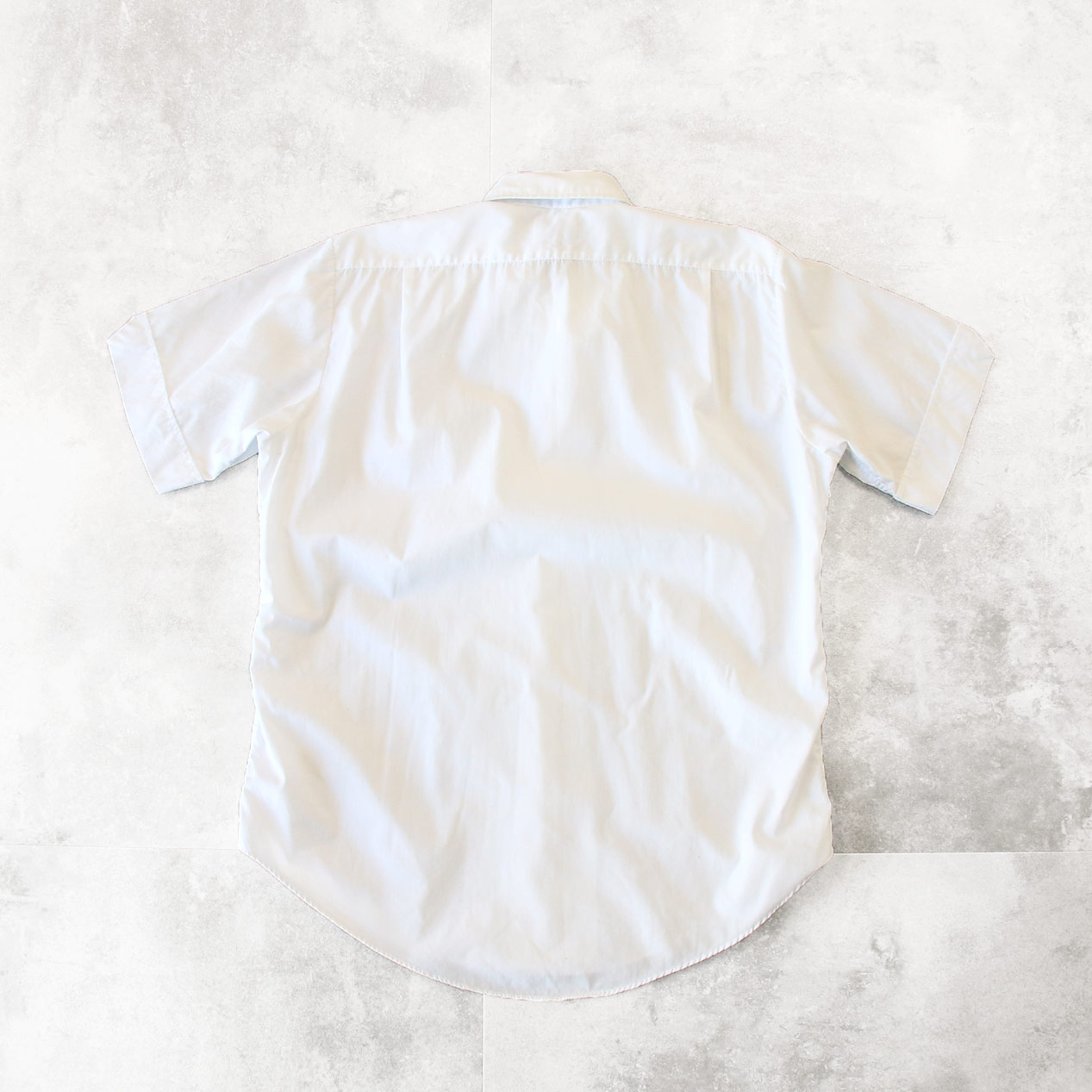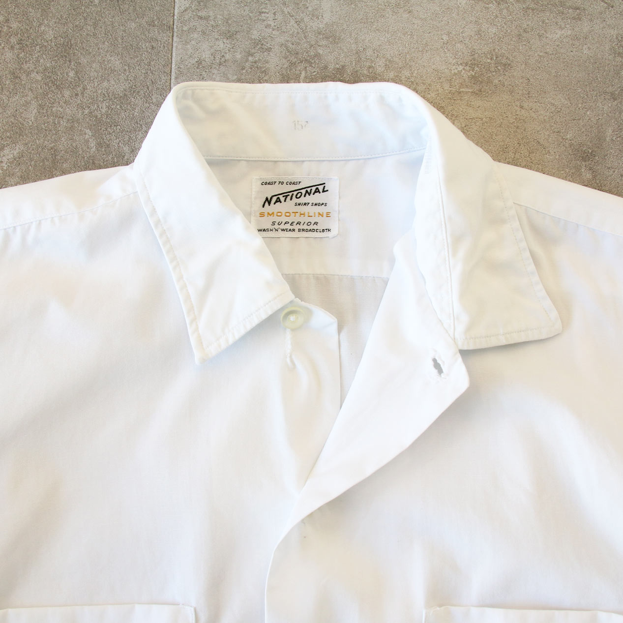 MODEL: NATIONAL White Cotton Broadcloth S/S Shirt MADE IN: --- AGE: 60's SIZE: 15 1/2 COLOR: ホワイト MATERIAL: --- (おそらくコットン 100%) COMMENT: 60年代 ナショナル ショートスリーブシャツ コットンブロード 両胸ポケット ●BLOGでもご紹介しておりますので是非ご覧ください● SIZE DETAILS Size Chart 身幅: 60cm 着丈: 78.5cm 肩幅: 44cm 袖丈: 25cm ※着用モデル(男性): 身長176cm / 体重54kg CONDITION Condition Chart Rank "C" 着用感があり、汚れ・ダメージ・色褪せが一部または全体にある状態(下記詳細) ・全体: 着用感 ・フロント: 第一ボタン付近/第一ボタンホールに手まつりリペア、胸部/腹部付近に汚れ ※その他詳細や詳しい画像をご覧になりたい場合はContact Formからお気軽にお問い合わせ下さい。