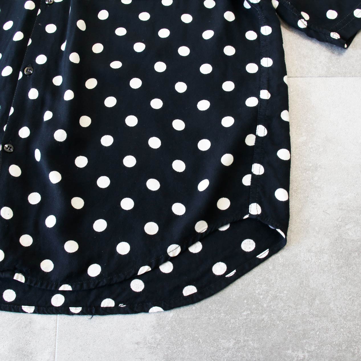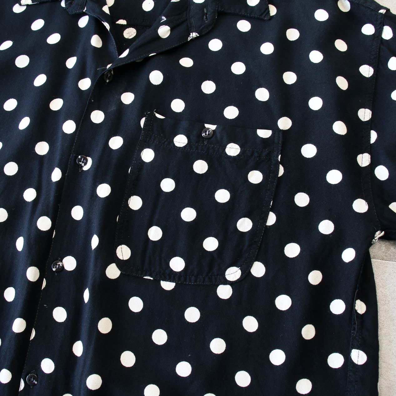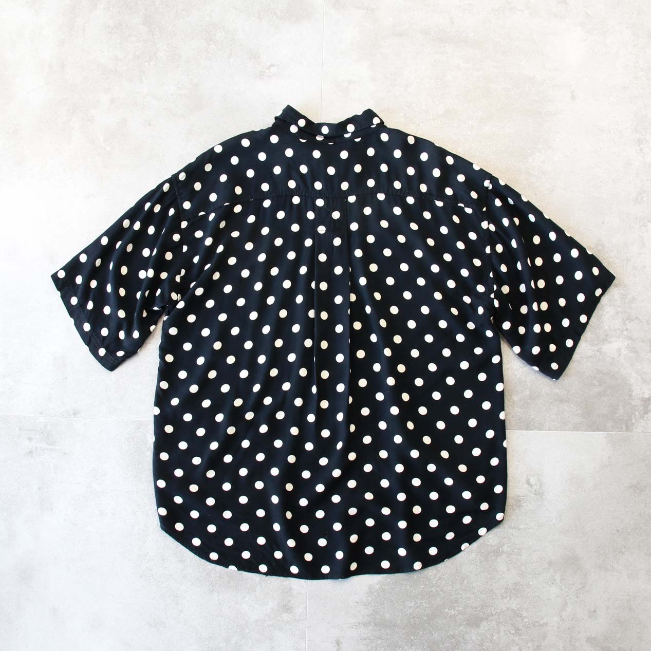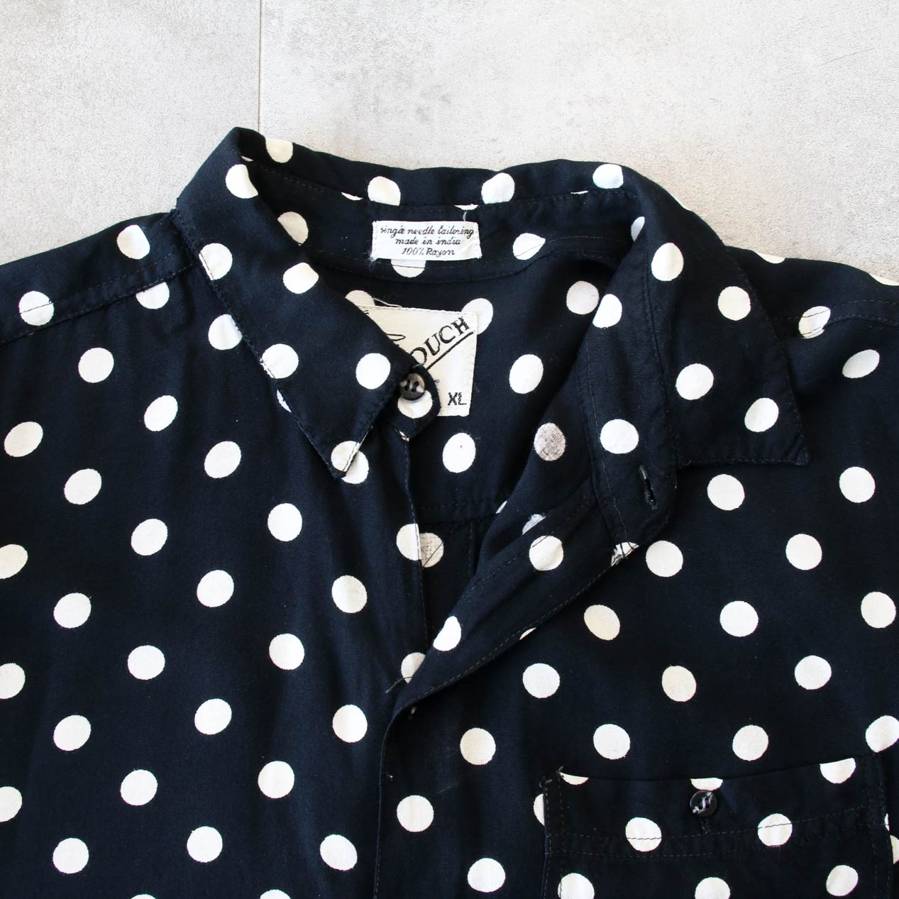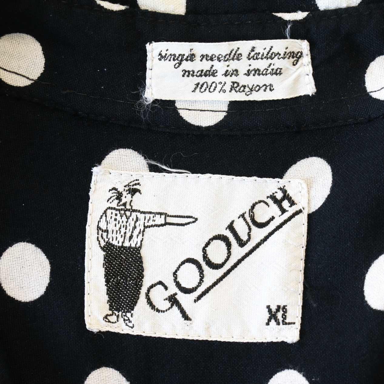 MODEL: GOOUCH Black x White Dot Patterned Rayon Shirt MADE IN: India AGE: 80's~ SIZE: XL COLOR: ブラック MATERIAL: レーヨン 100% COMMENT: 80年代 グーチ レーヨンシャツ