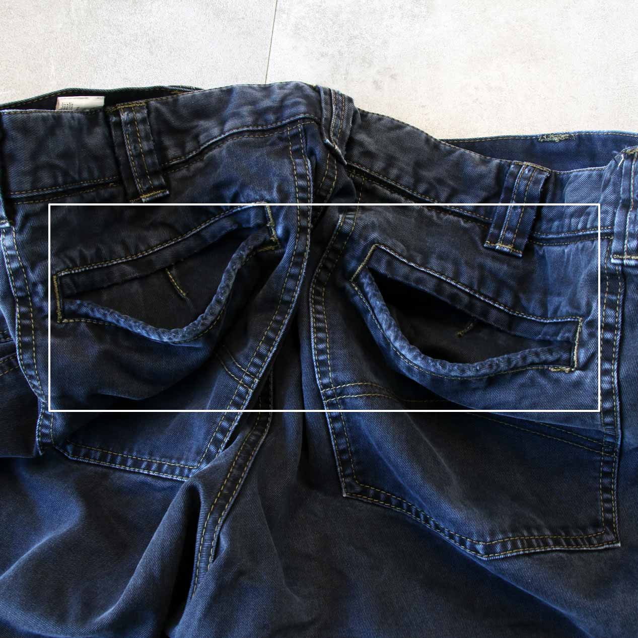 ・全体: 着用感、各ポケット口/両脚裾にスレ