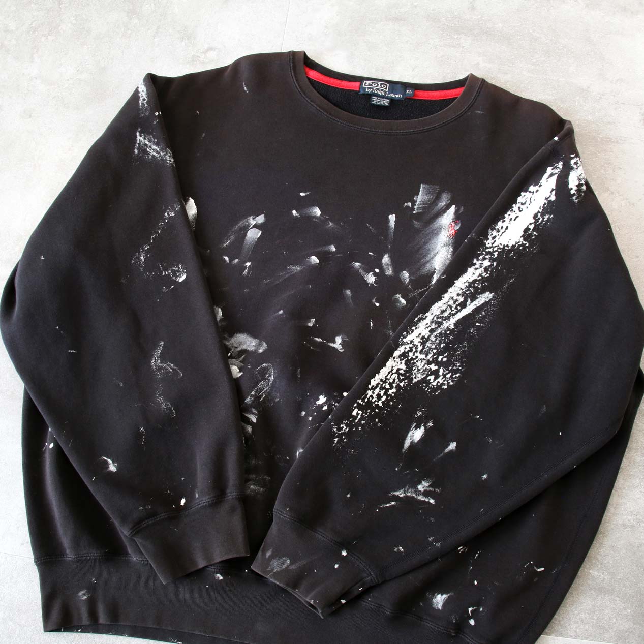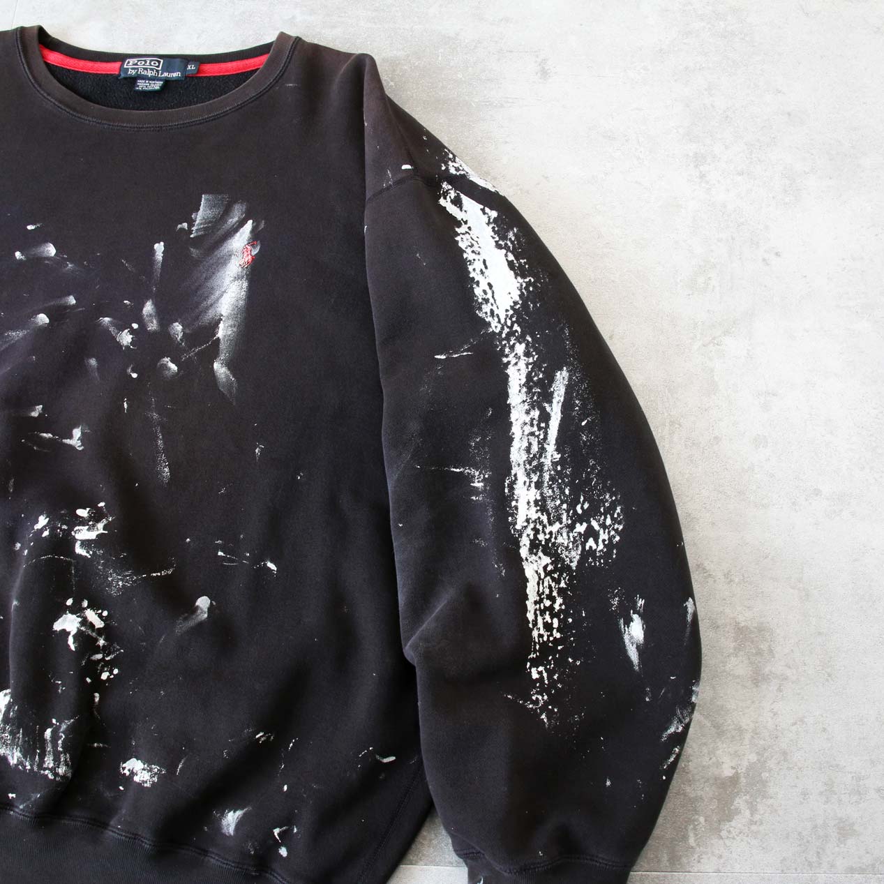 90’s POLO RALPH LAUREN “BLACK” Painted Sweatshirt [XL]