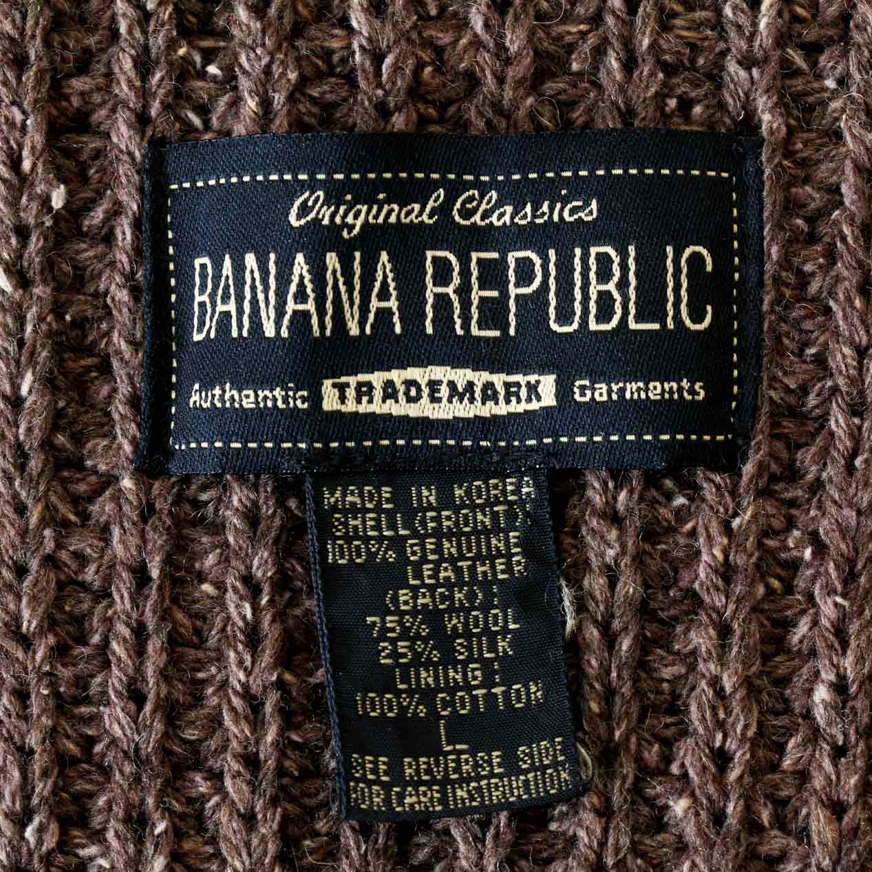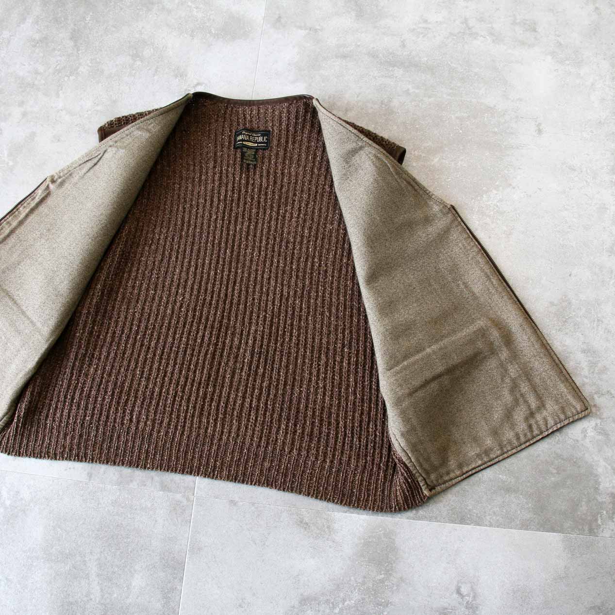90’s BANANA REPUBLIC Leather / Wool Silk Knit Combination Vest [L]