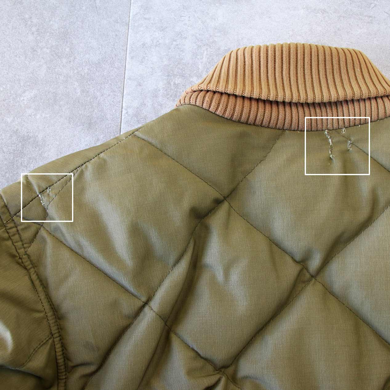 ・フロント: ジップテープ裂け (ジップ開閉は可能/両端に裂け止めハンドステッチ済み)、ウインドフラップ端にスレ