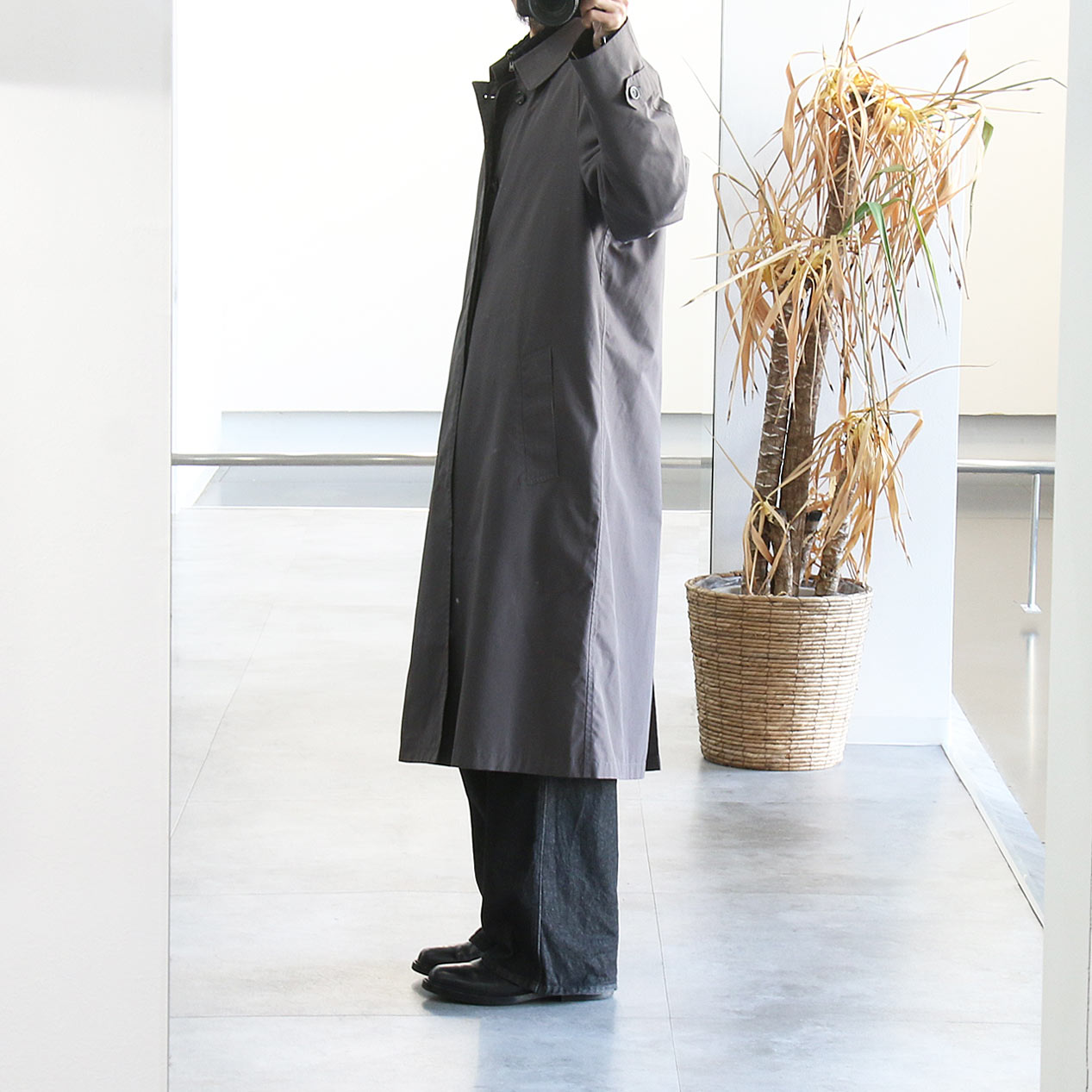 ・90’s POLO RALPH LAUREN “BLACK” All Cotton Gabardine Balmacaan Coat [S]
