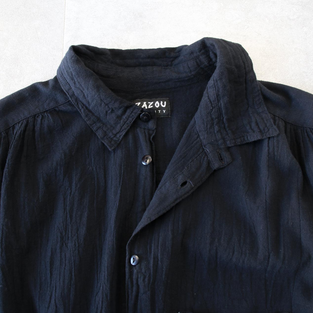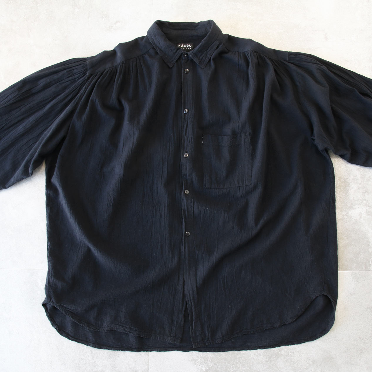 MODEL: ZAZOU UTILITY Gathered Gauze Shirt