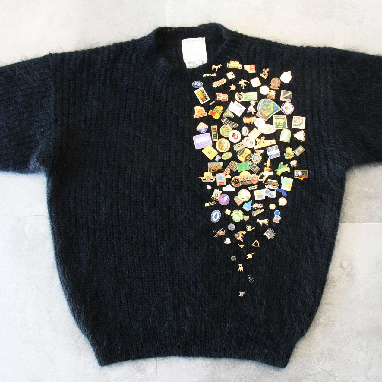 MODEL: VITRUVIAN DESIGN Black Mohair Knit Sweater With Pins