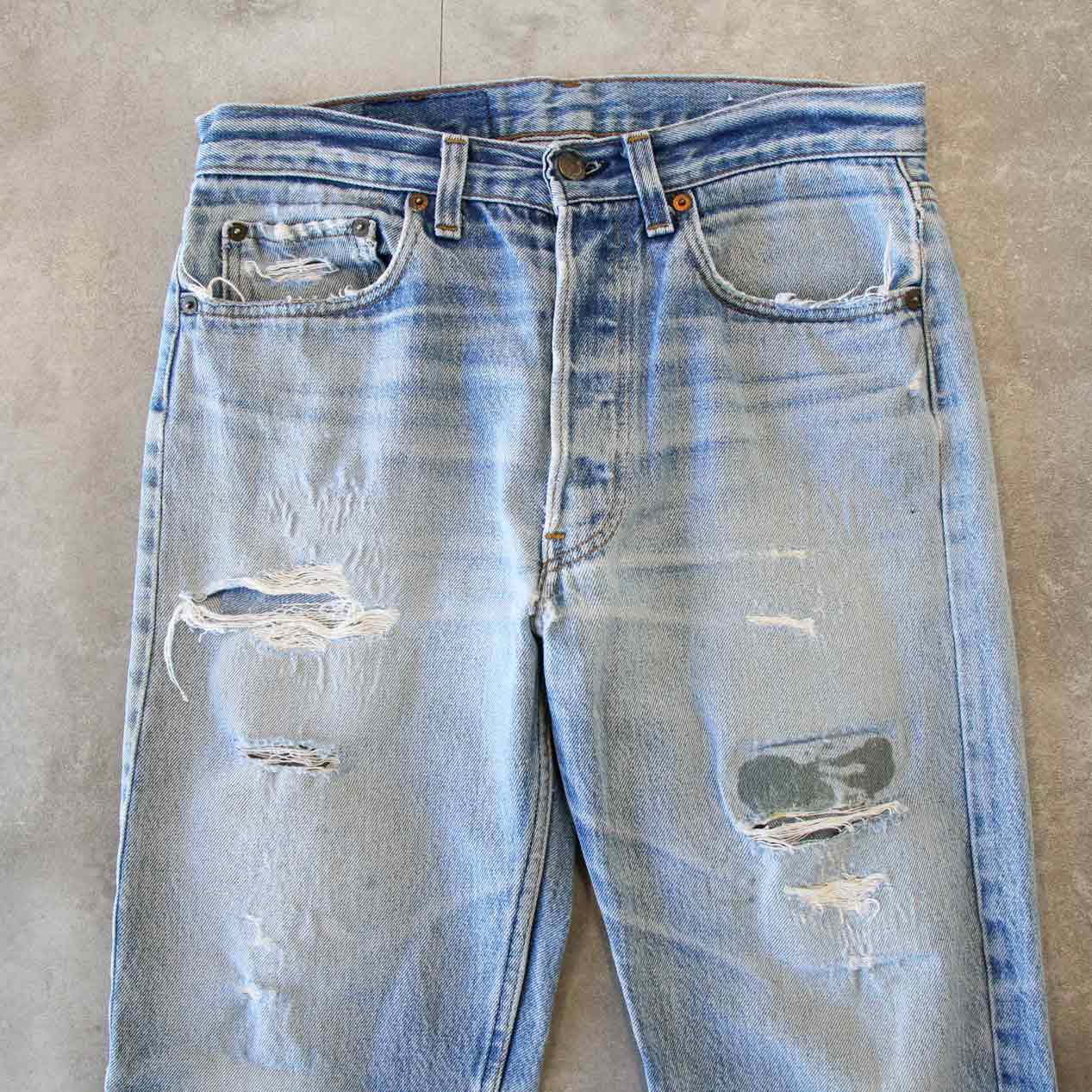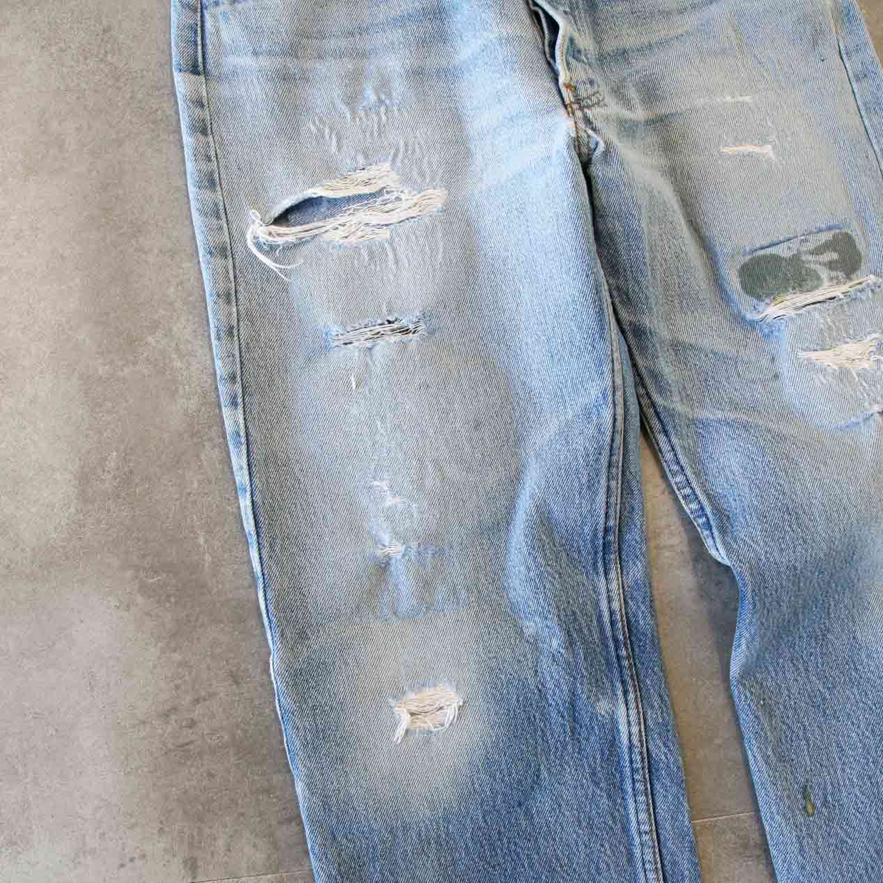 ・80’s LEVI’S 501 Damaged & Repaired Denim Pants Made In U.S.A. [W32]