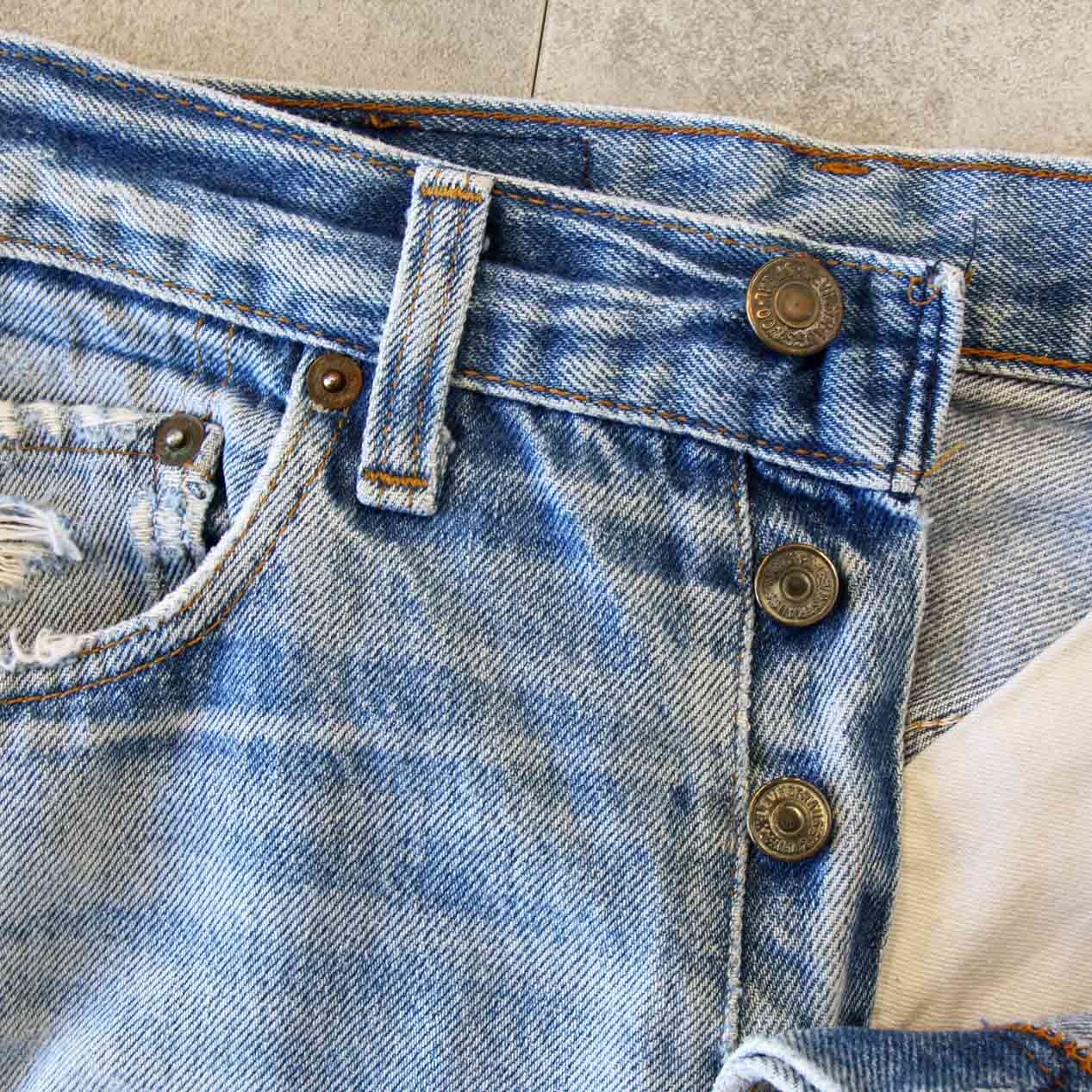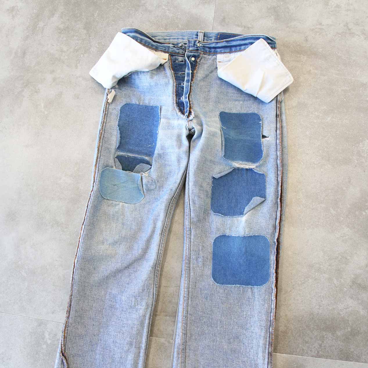 80’s LEVI’S 501 Damaged & Repaired Denim Pants Made In U.S.A. [W32]