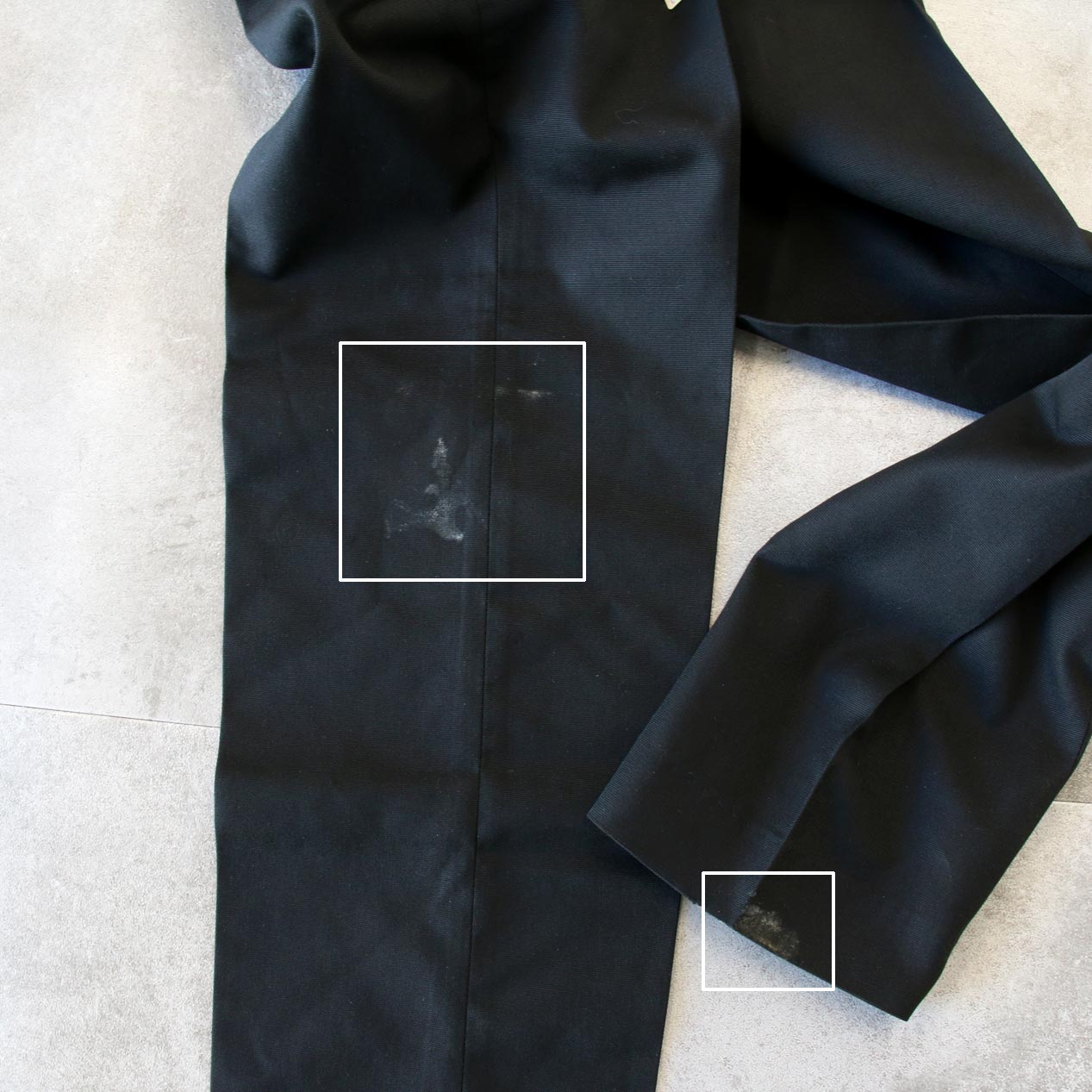 ・右脇/左脚裾に汚れ