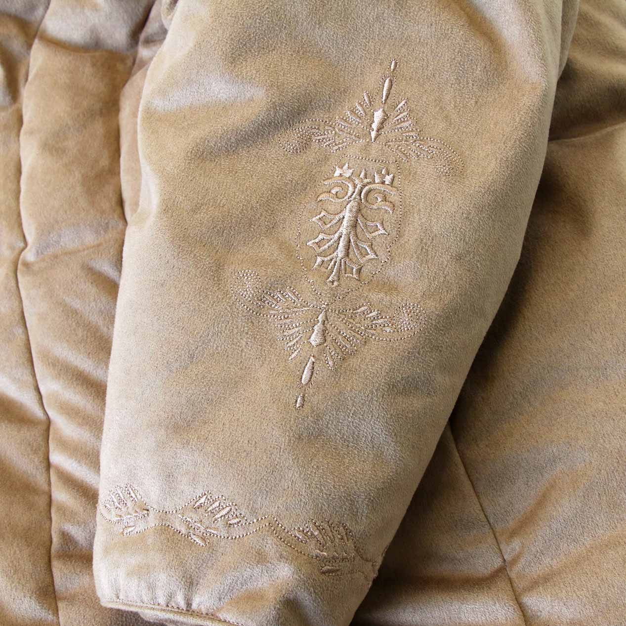 MODEL: CABELA’S Embroidered Faux Suede Down Jacket