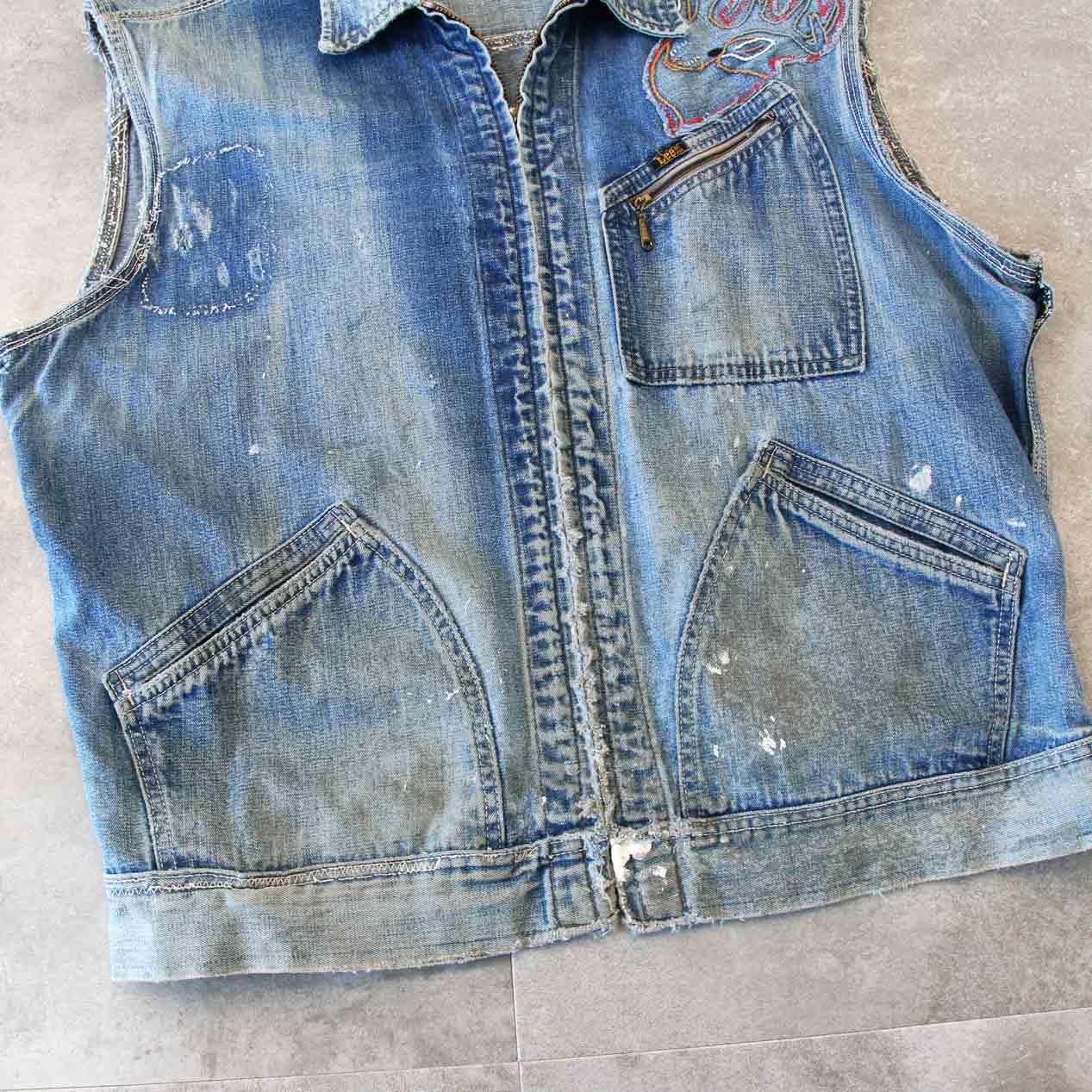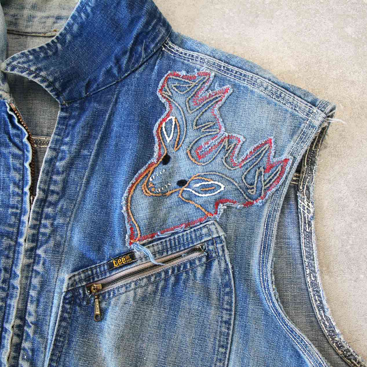 MODEL: LEE 91-B Embroidered Denim Sleeveless Jacket