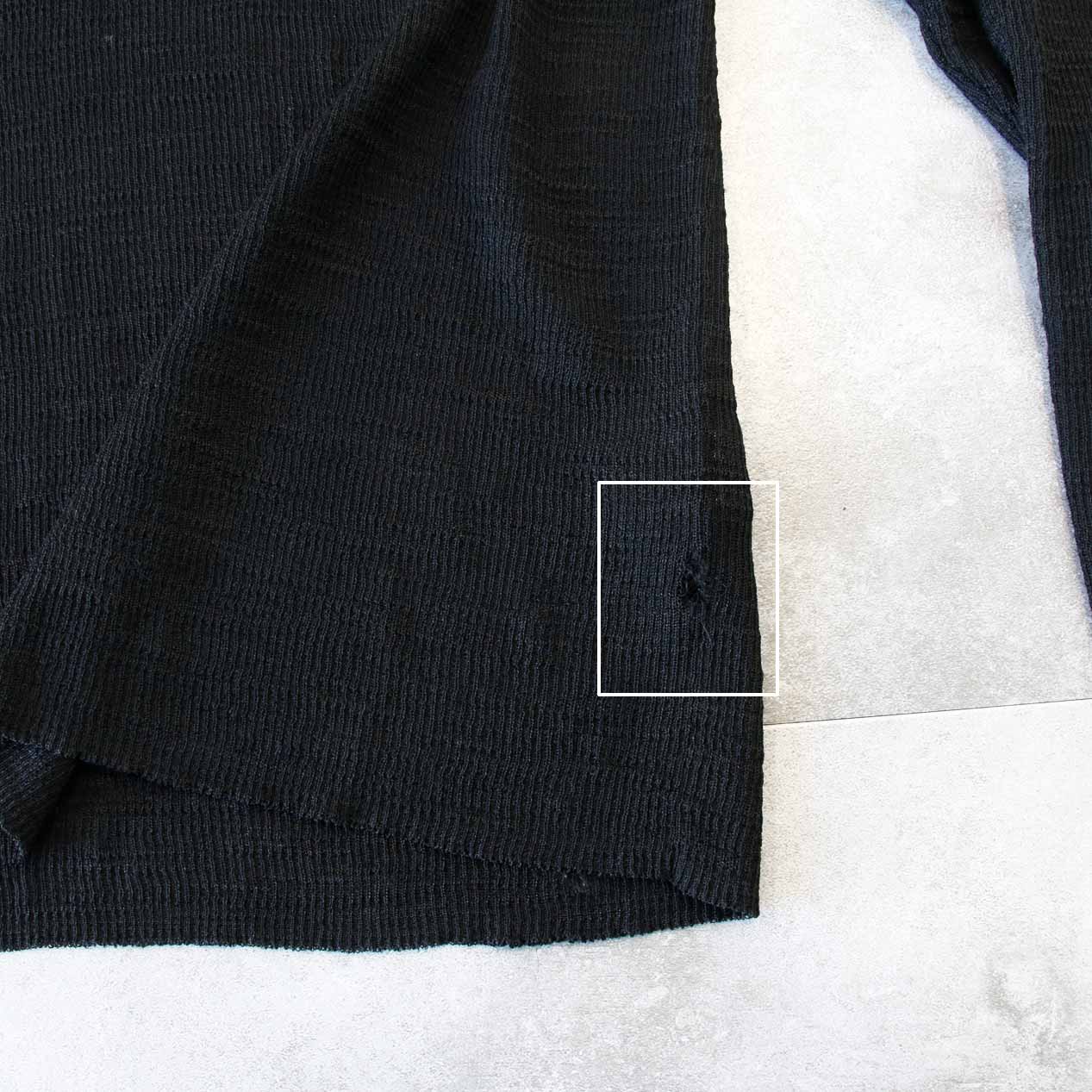 ・フロント、袖: 胸部/左脇裾/右袖に穴