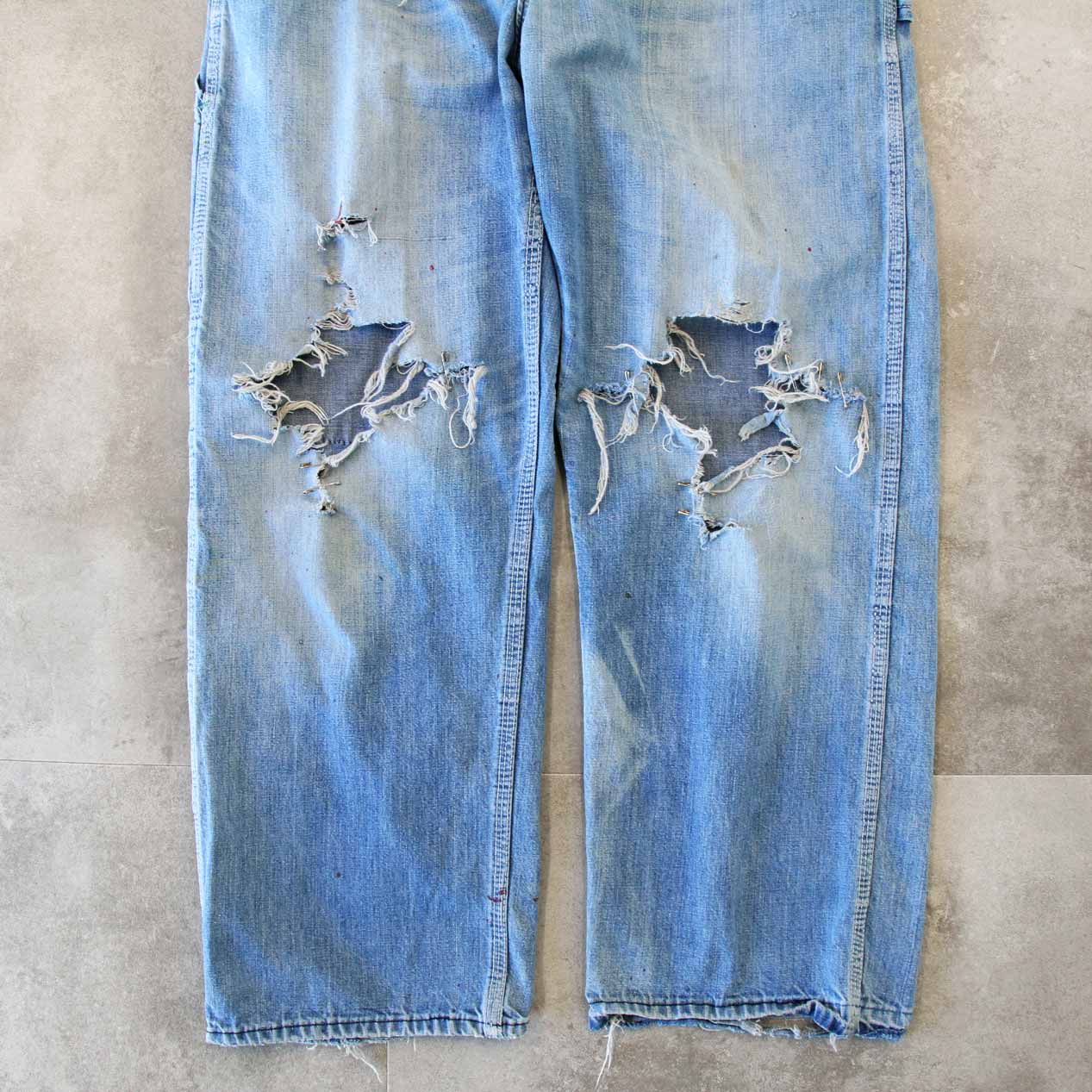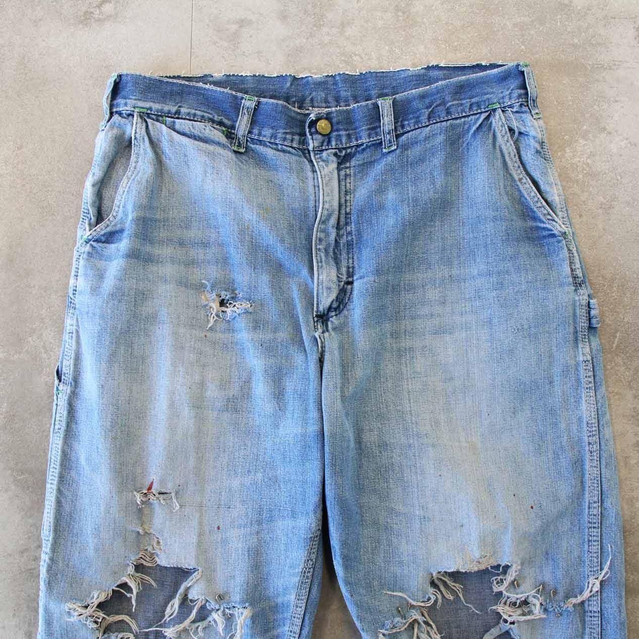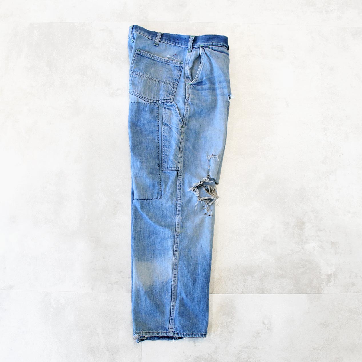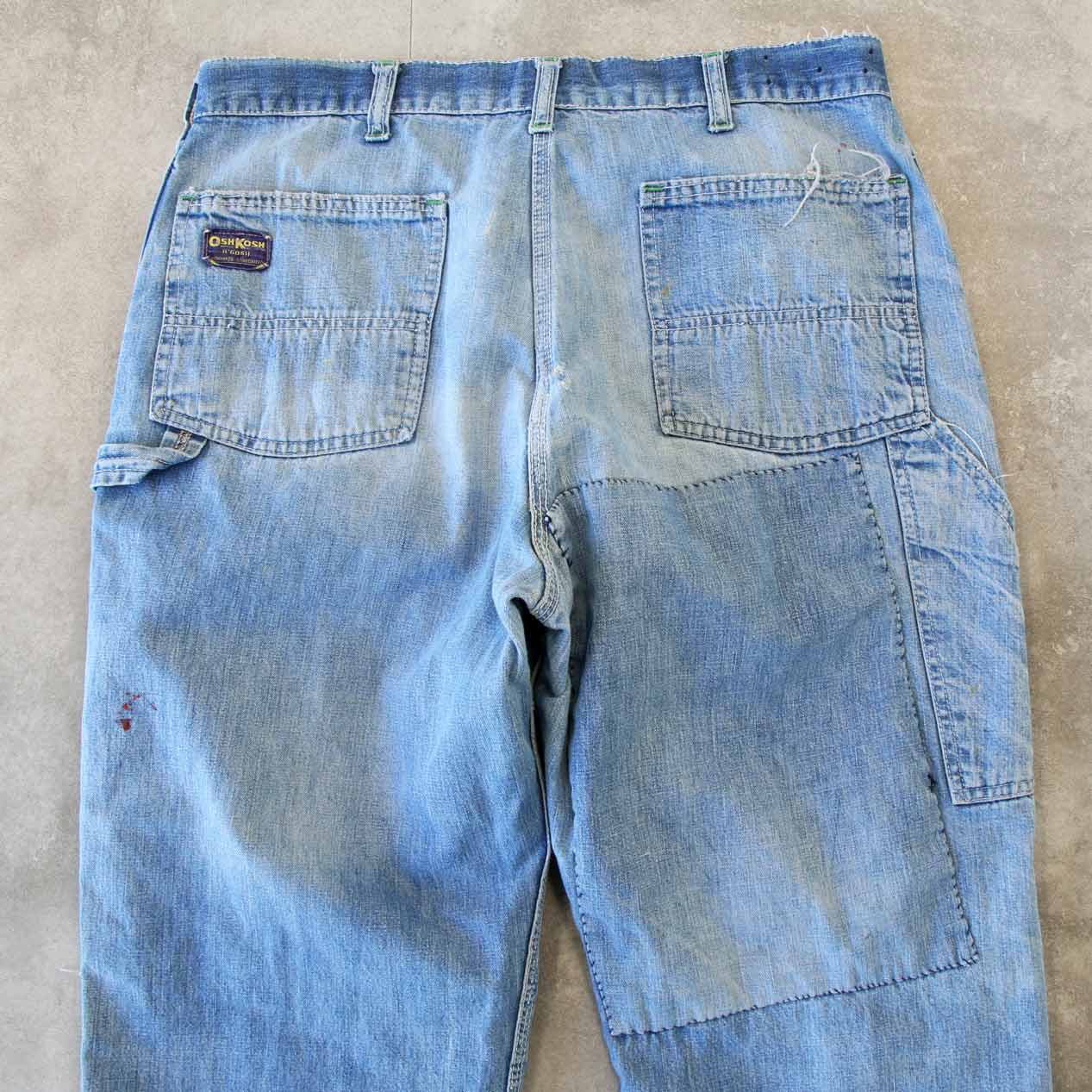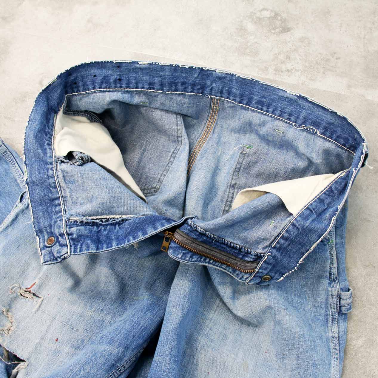 ・60’s OSHKOSH Damaged & Repaired Denim Painter Pants [About W36 / L27]