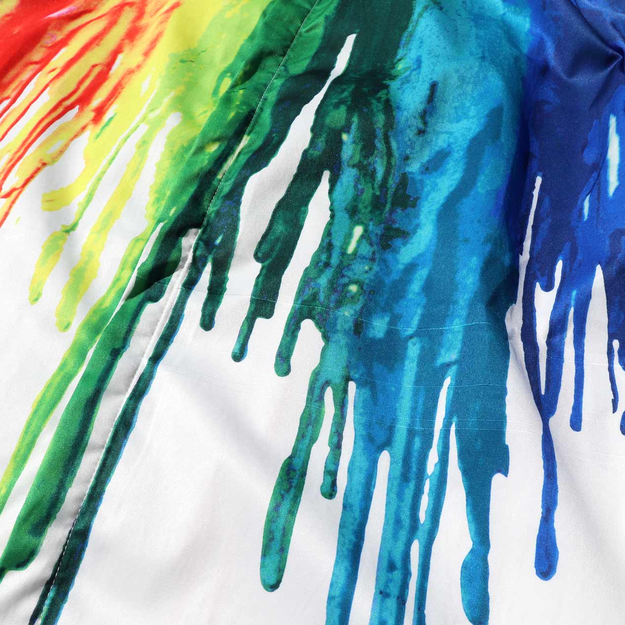 フロント・バック・袖にレインボーのペンキ転写プリントデザイン。