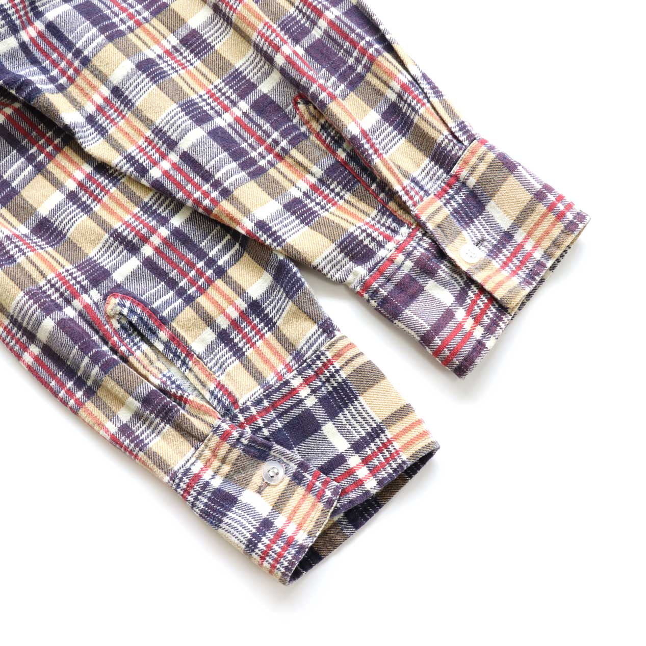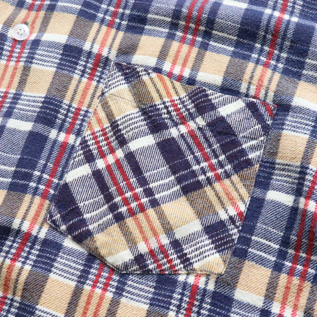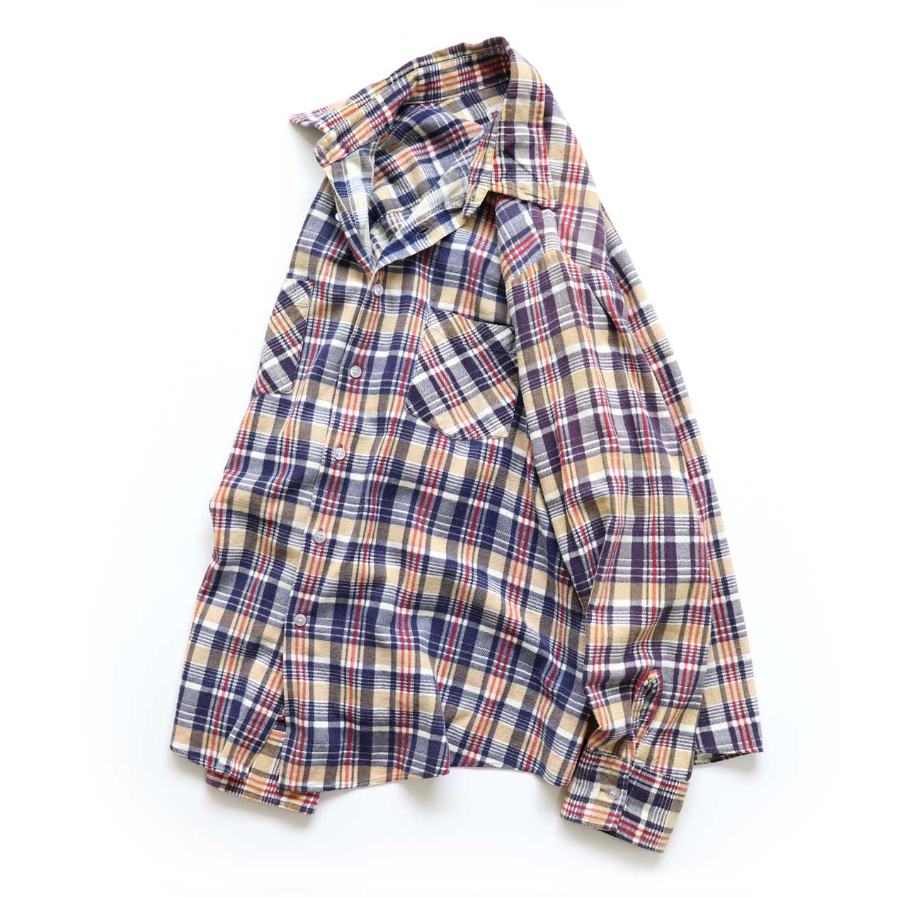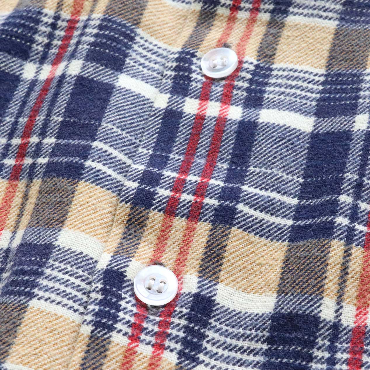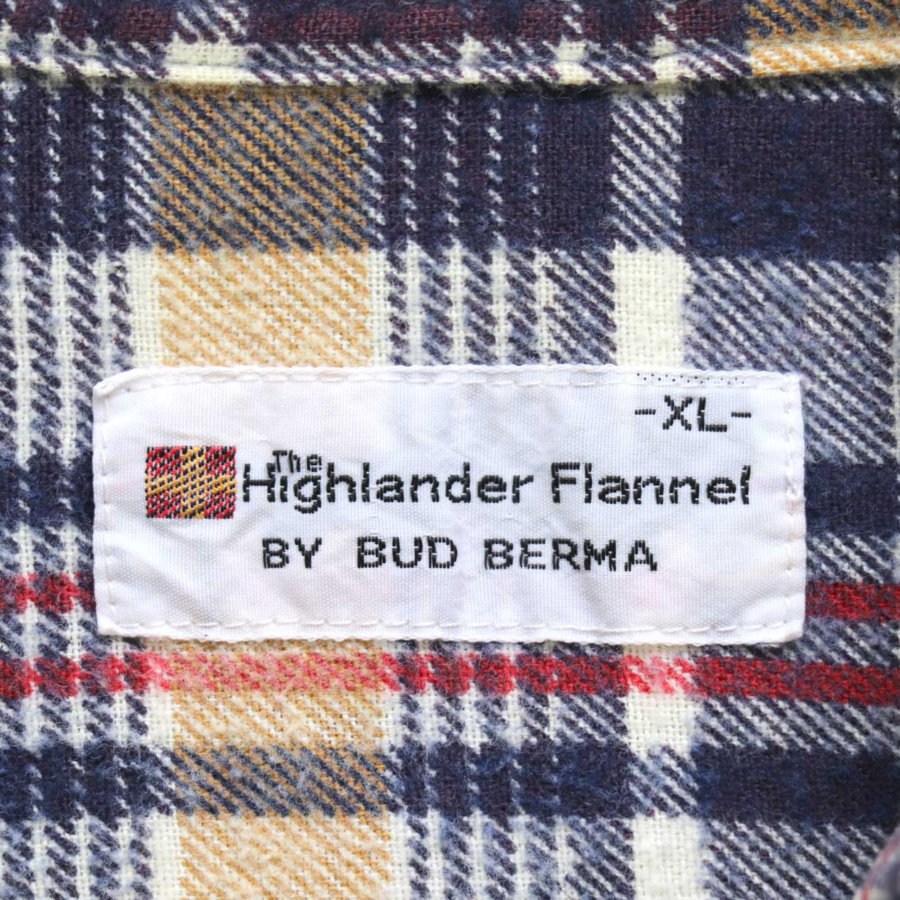 MODEL : HIGHLANDER Print Flannel Shirt MANUFACTURE : Made In Northern Mariana Island (U.S.A.) AGE : 80-90's SIZE : XL COLOR : イエロー×ネイビー×レッド MATERIAL : コットン 100% COMMENT : 80~90年代、ハイランダーのプリントネルシャツです。