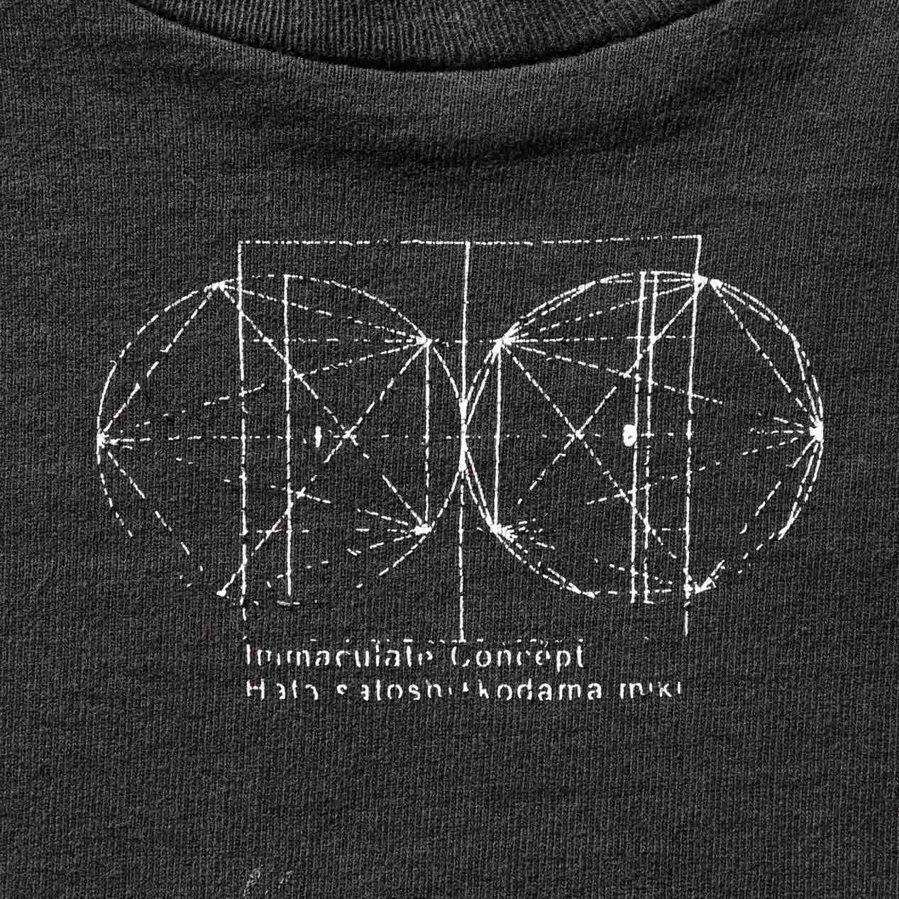 MODEL : IMMACULATE CONCEPT “広げると T の字形になることからこの名称がある。” T-Shirt MANUFACTURE : Made In U.S.A. AGE : 90's SIZE : M COLOR : ブラック MATERIAL : コットン 100% COMMENT : 90年代、IMMACULATE CONCEPTのプリントTシャツです。