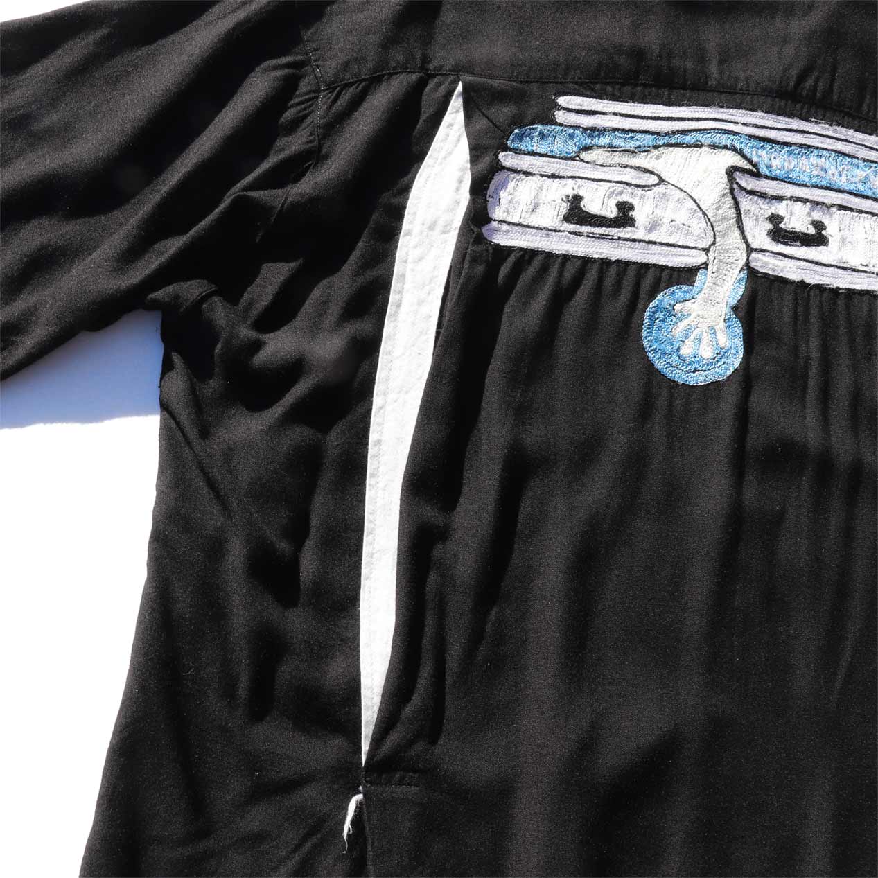 MODEL : PARAGRAFF “MADUROS FUNERAL HOME” Black Bowling Shirt MANUFACTURE : Made In India AGE : 90's SIZE : M COLOR : ブラック×ホワイト MATERIAL : レーヨン 100% COMMENT : 90年代、パラグラフのボーリングシャツです。