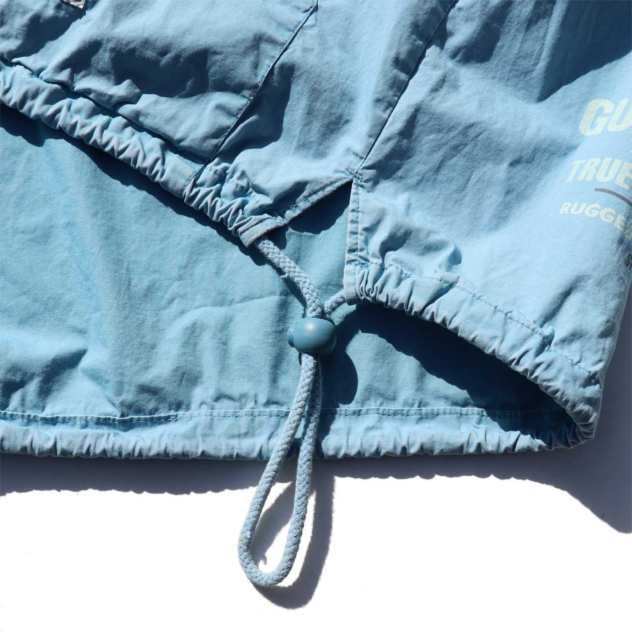 フロント3ポケット、袖口ドットボタン留め、身頃裾ドローコード入り。