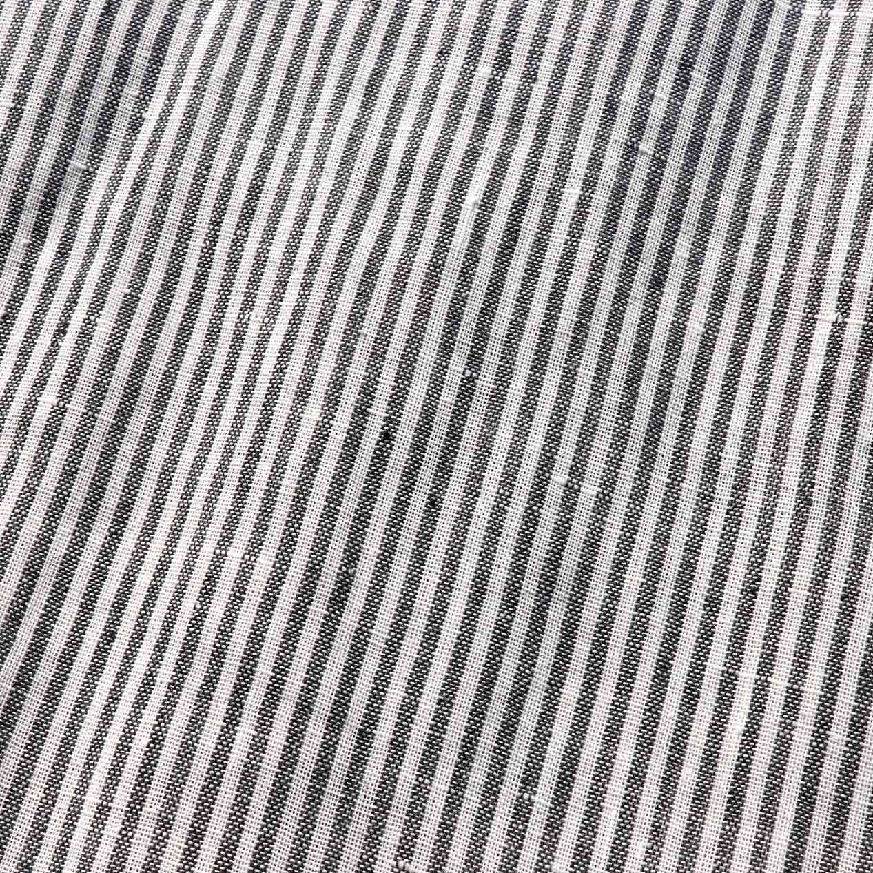 甘織りのコットンシャンブレー生地、オフ×グレーの細ピッチストライプパターン。