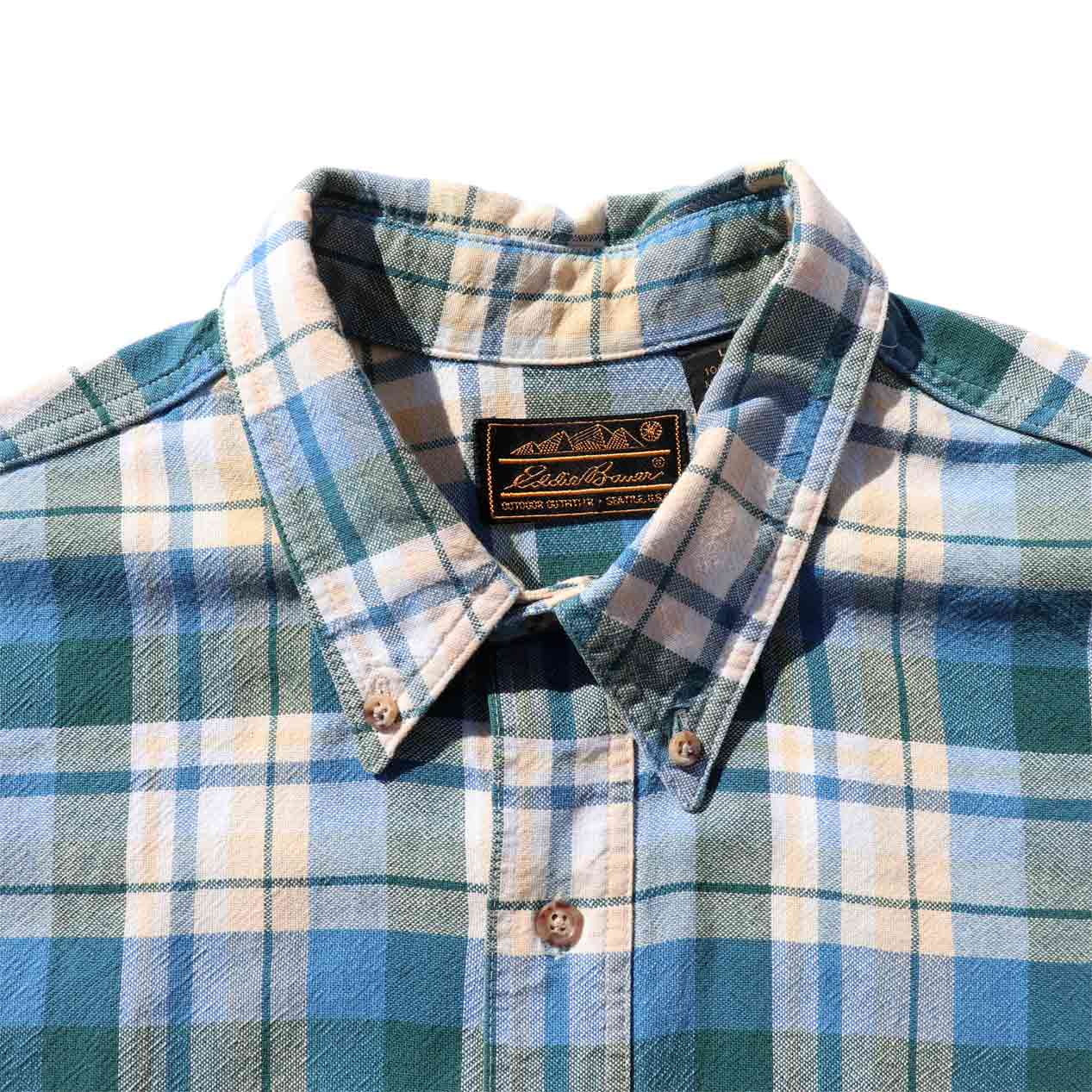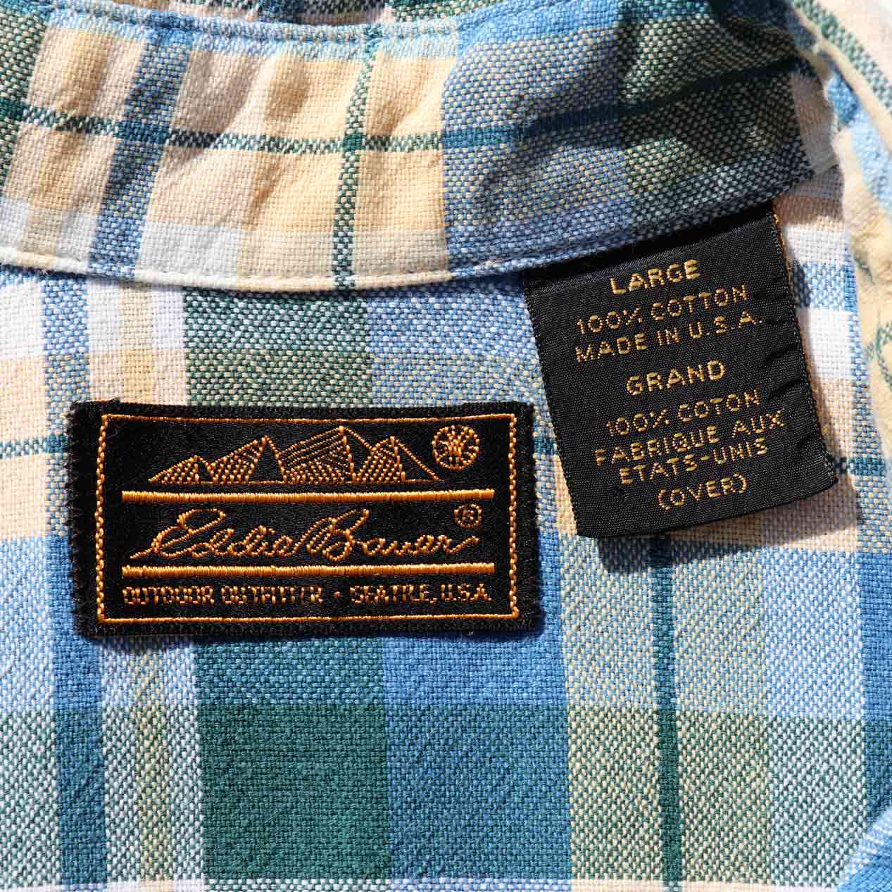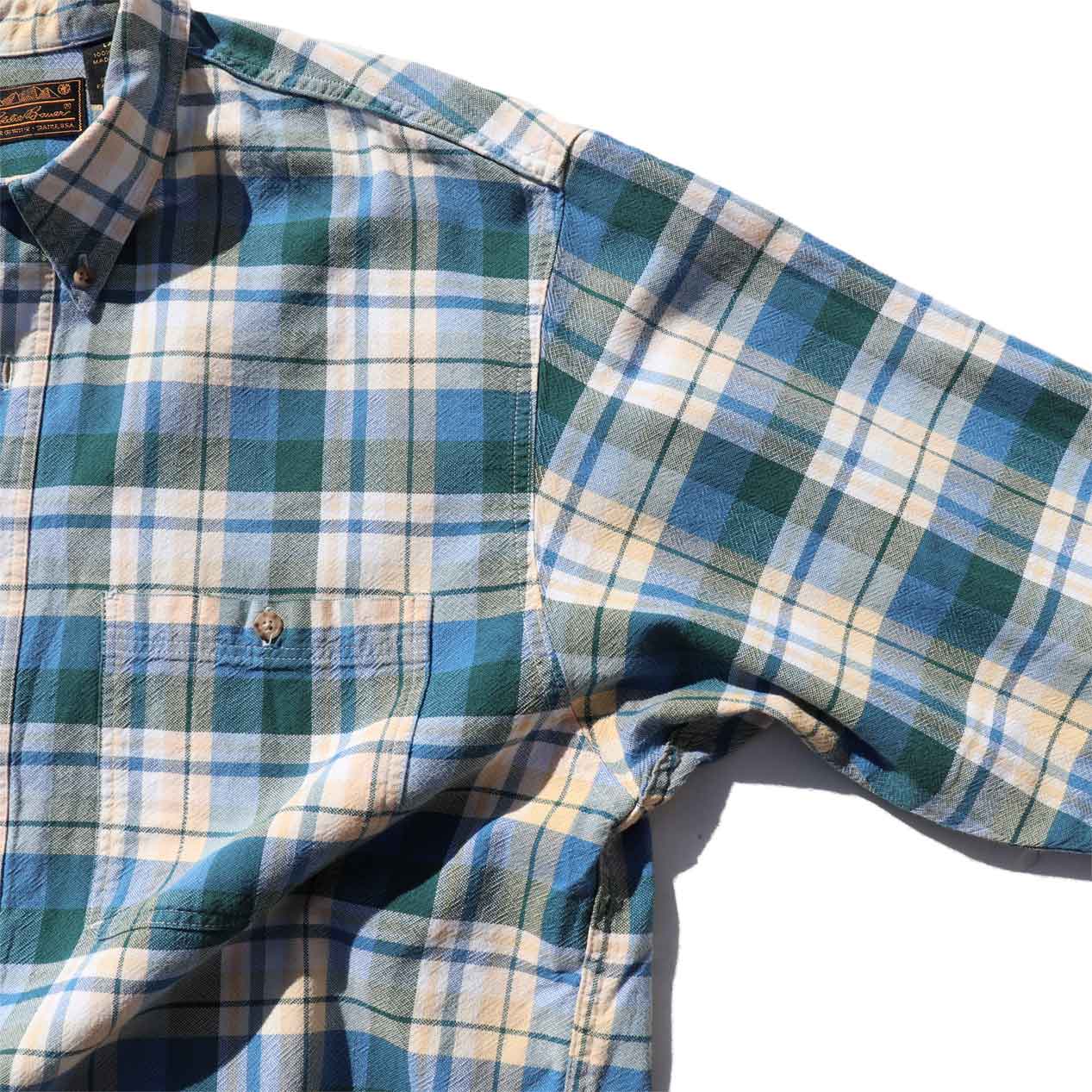 MODEL : EDDIE BAUER USA製 マドラスチェック L/Sシャツ MANUFACTURE : Made In U.S.A. AGE : 80's SIZE : L COLOR : ブルー系 MATERIAL : コットン 100% COMMENT : 80年代、エディーバウアーのL/Sシャツです。
