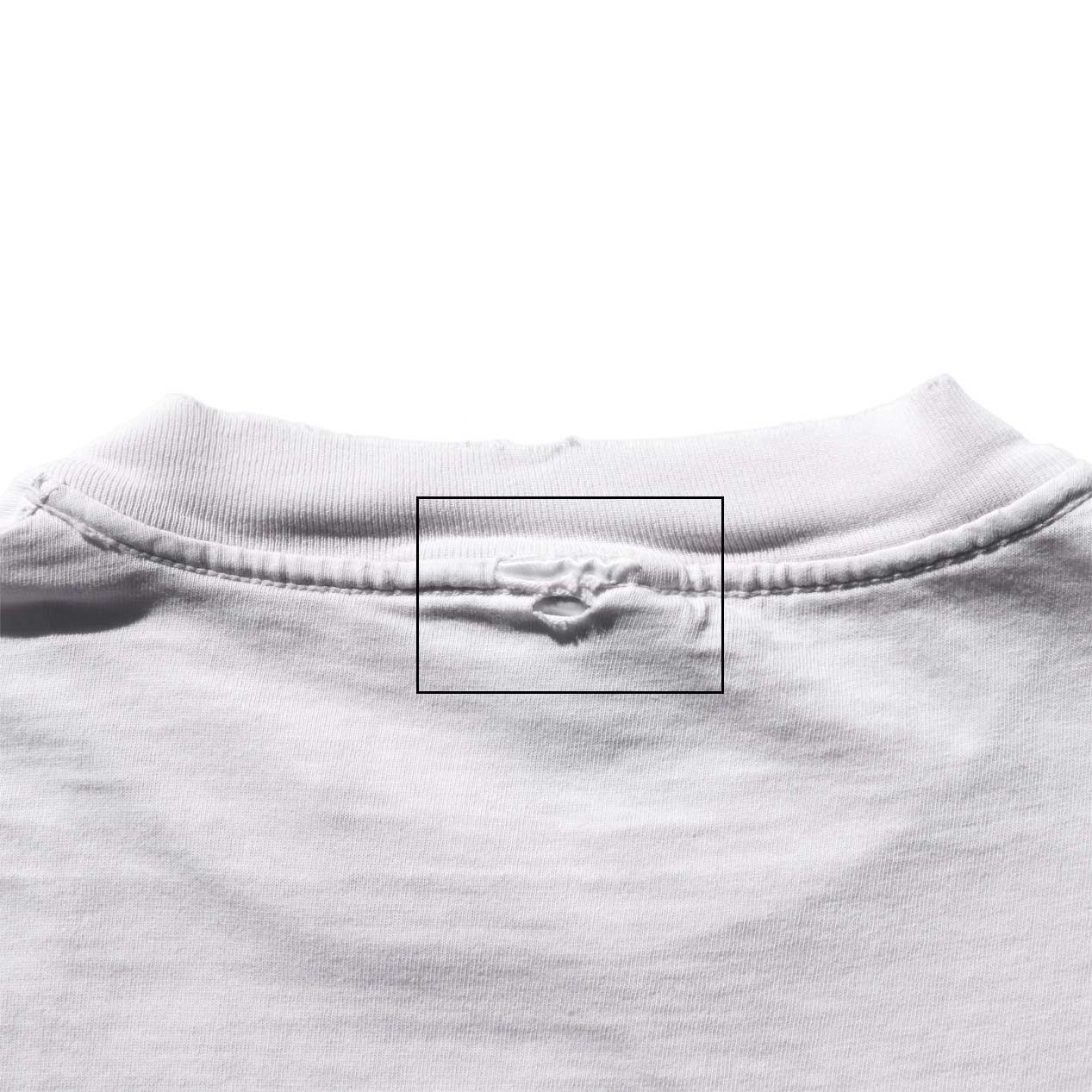 ・バック : 襟下、プリント周囲に穴、右脇付近に汚れ
