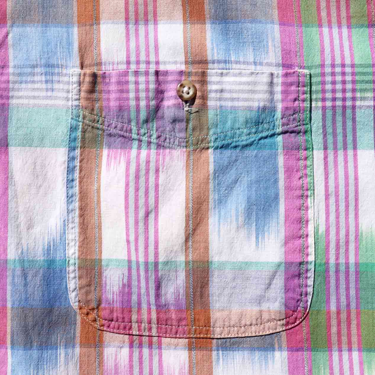 織りによるブラシストロークの擦れた表現が見事なマドラスチェックシャツ。