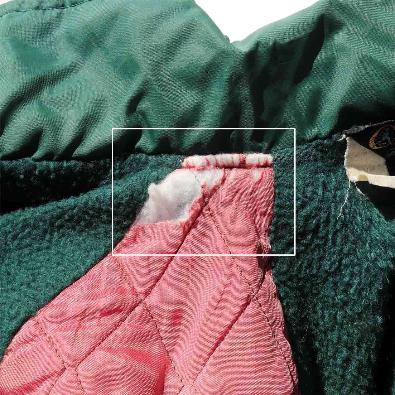 ・裏面 : 右肩裏地・両アームホール底に破れ