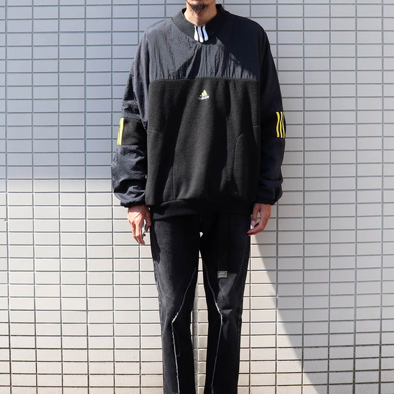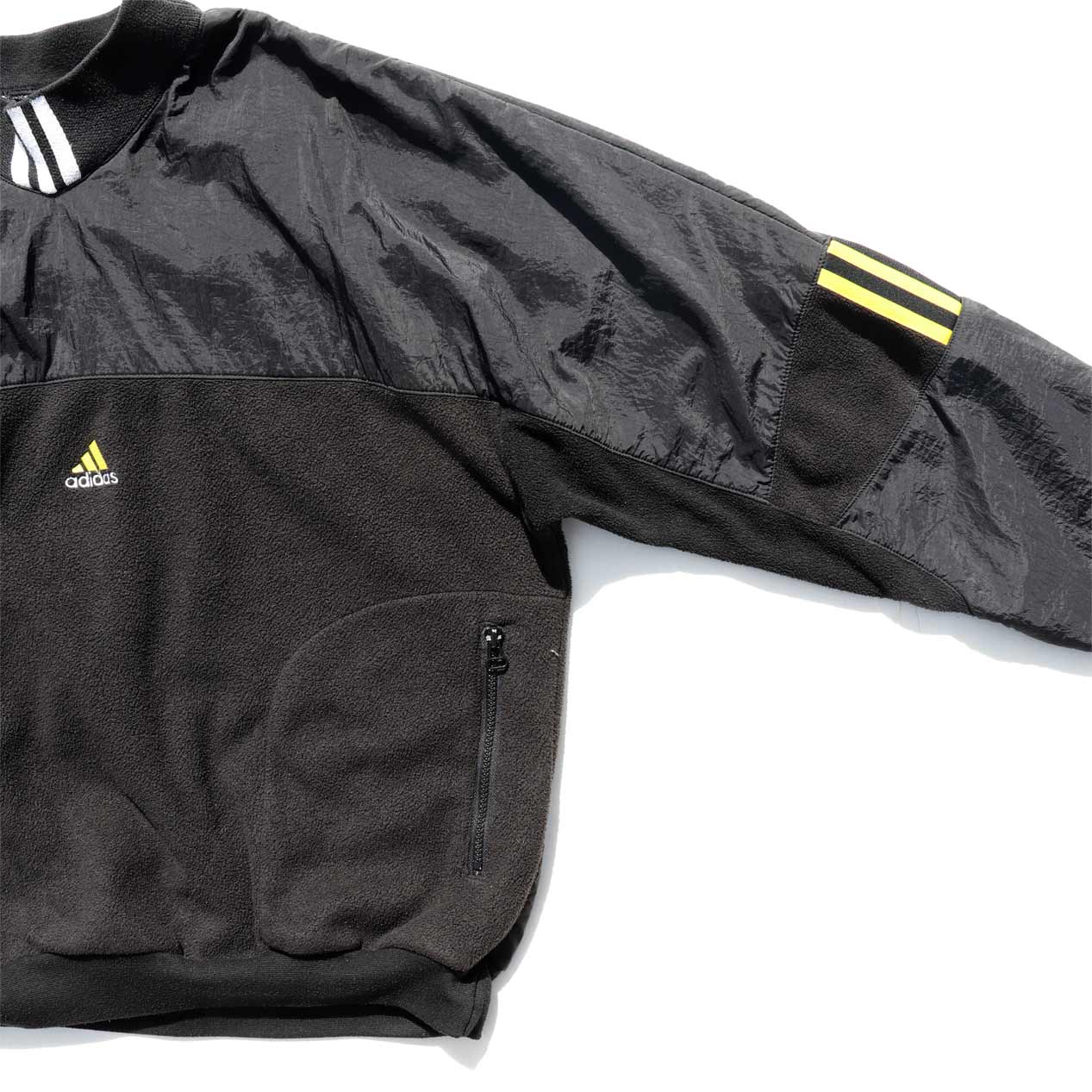 MODEL : ADIDAS Nylon / Fleece Pullover Jacket MADE IN : Malaysia AGE : 90's SIZE : M COLOR : ブラック/ブラック MATERIAL : ポリエステル 100% / ナイロン 100% COMMENT : 90年代 アディダス